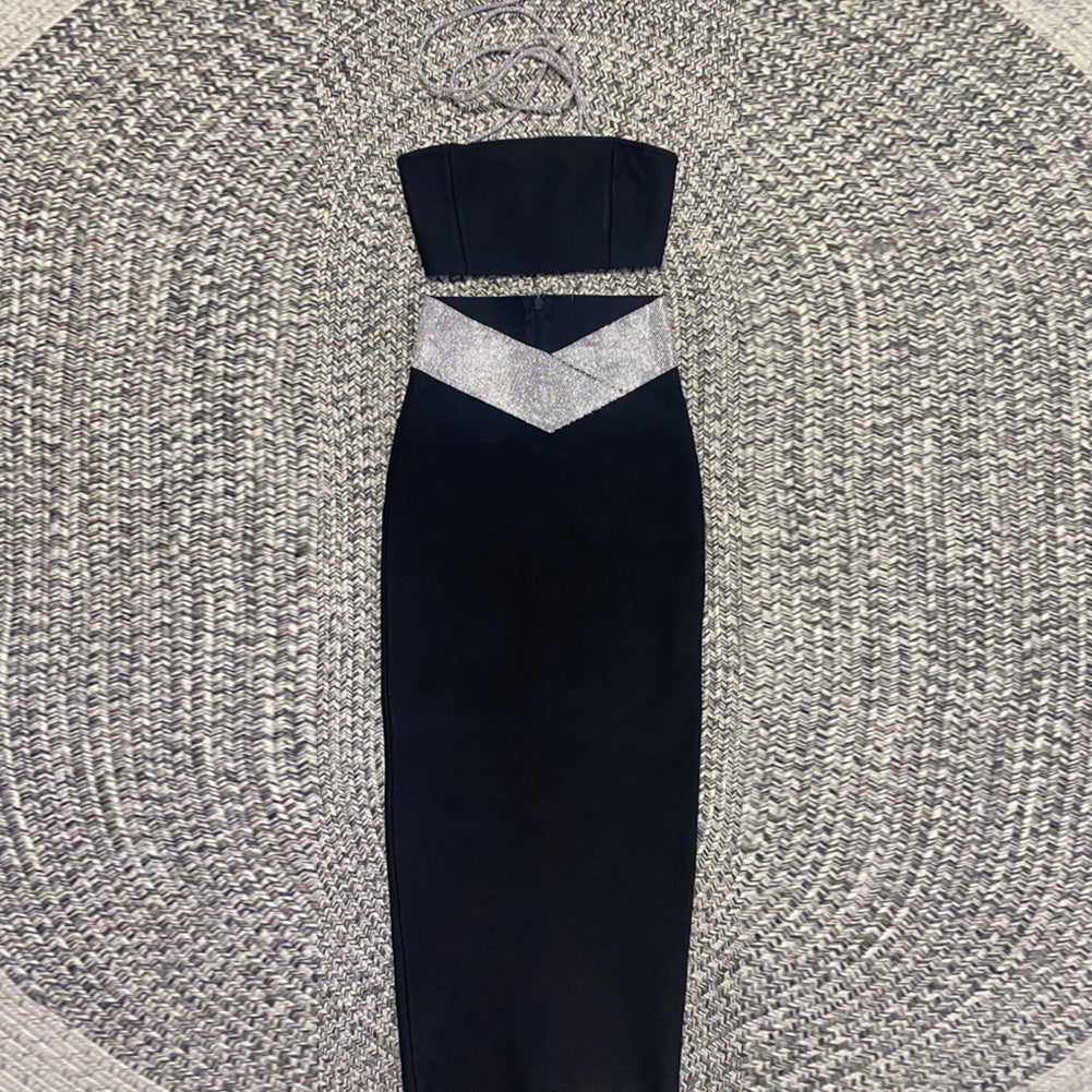 One Shoulder Sleeveless Drill Chain Bandage Set