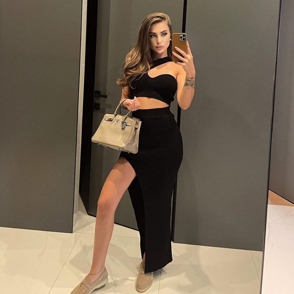 One Shoulder Sleeveless Exposed Waist Bandage Set