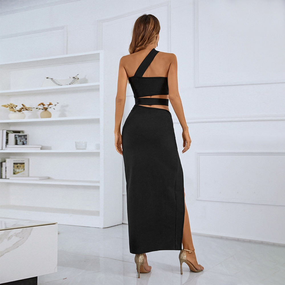 One Shoulder Sleeveless Maxi Exposed Waist Bandage Dress