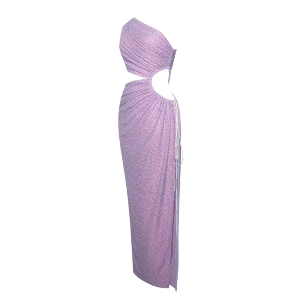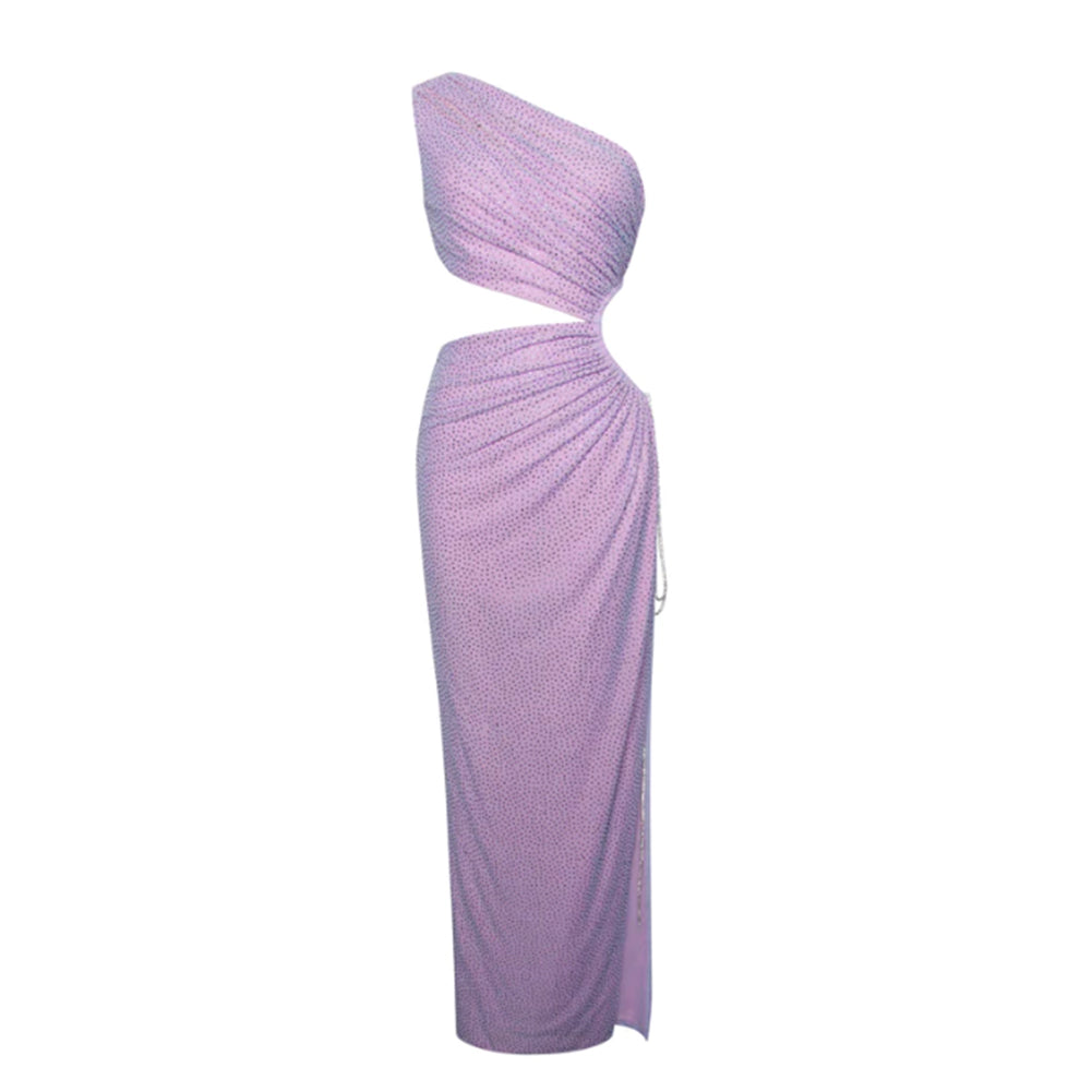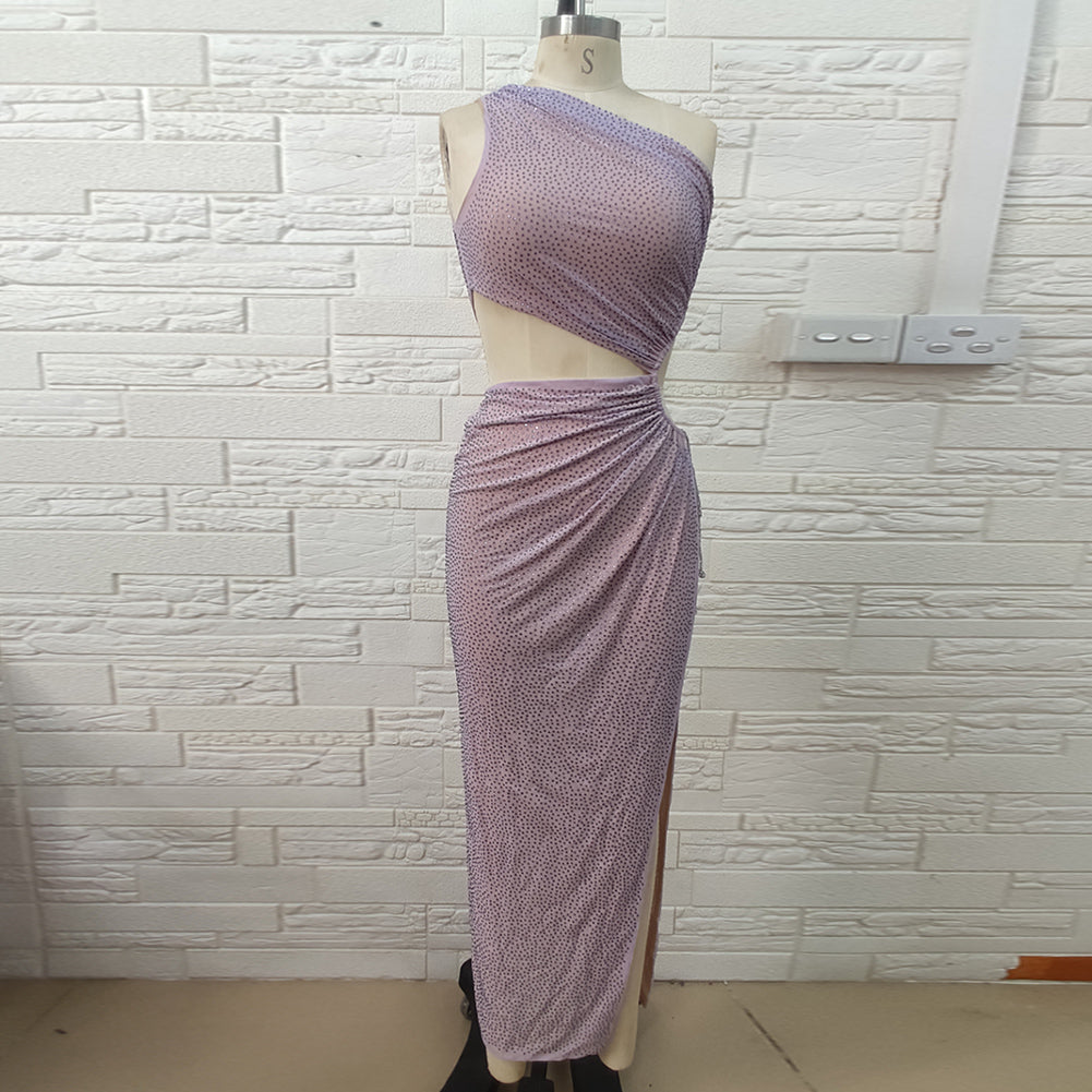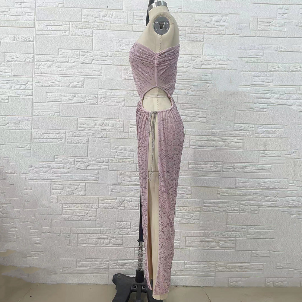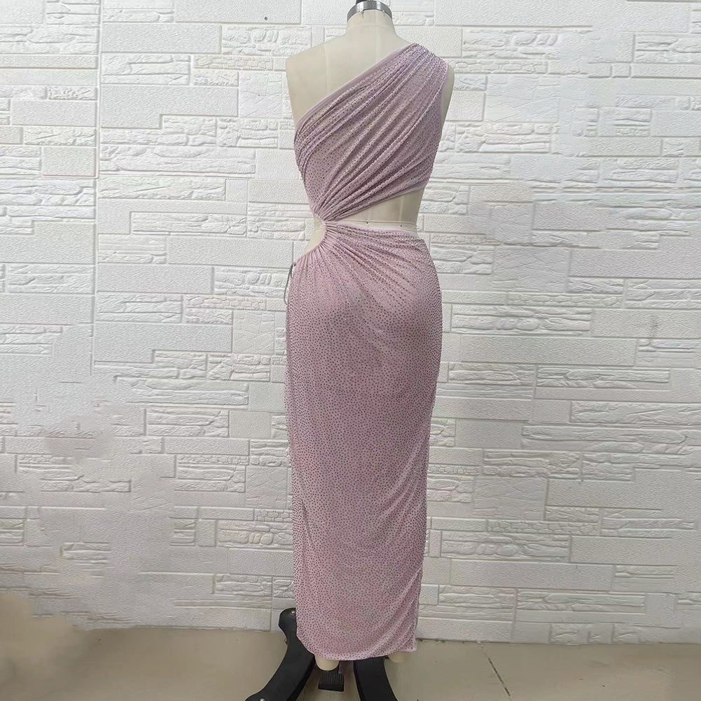 One Shoulder Sleeveless Maxi Rhinestone Bodycon Dress
