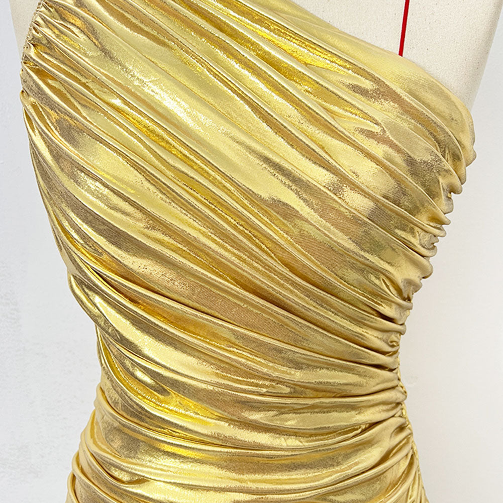 One Shoulder Sleeveless Midi Ruched Bodycon Dress