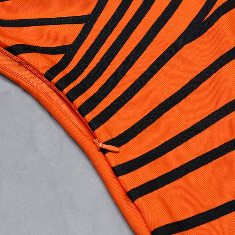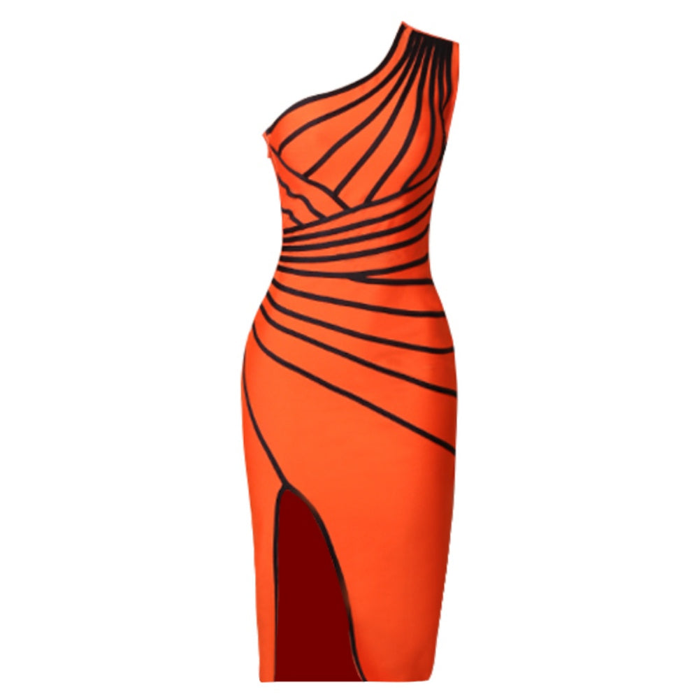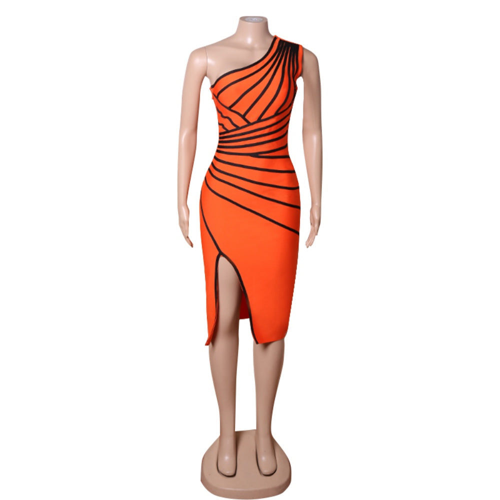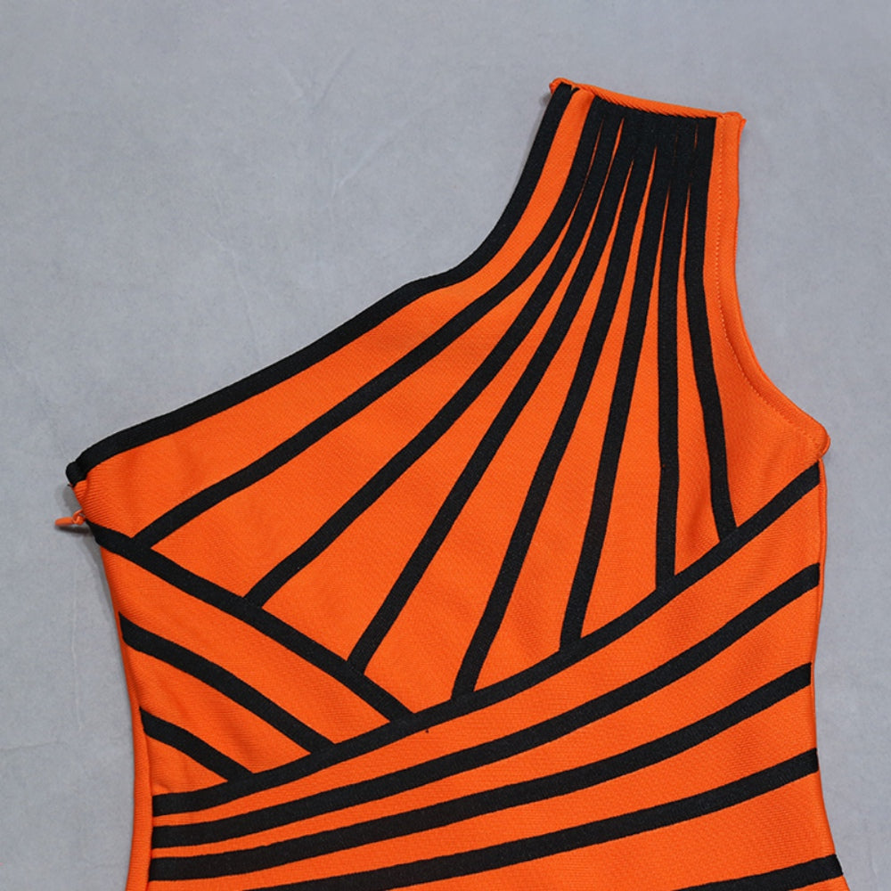 One Shoulder Sleeveless Midi Striped Bandage Dress