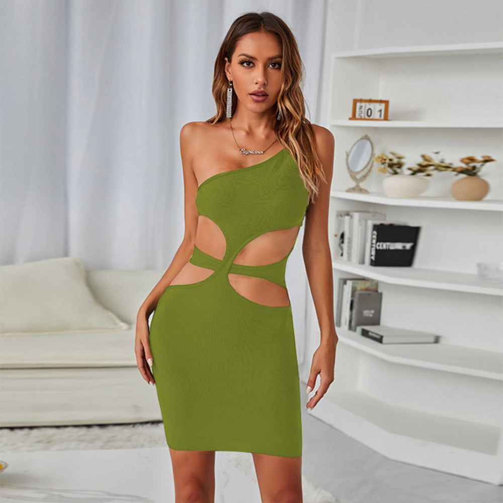 One Shoulder Sleeveless Mini Cut Out Bandage Dress
