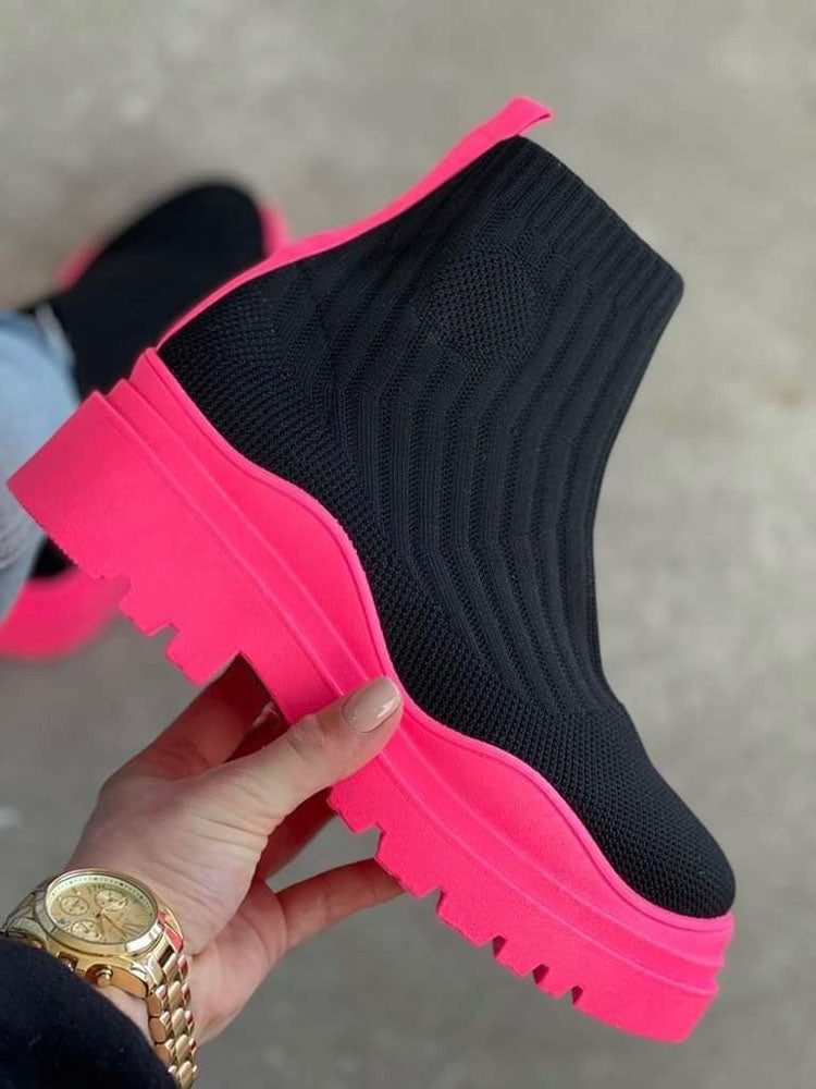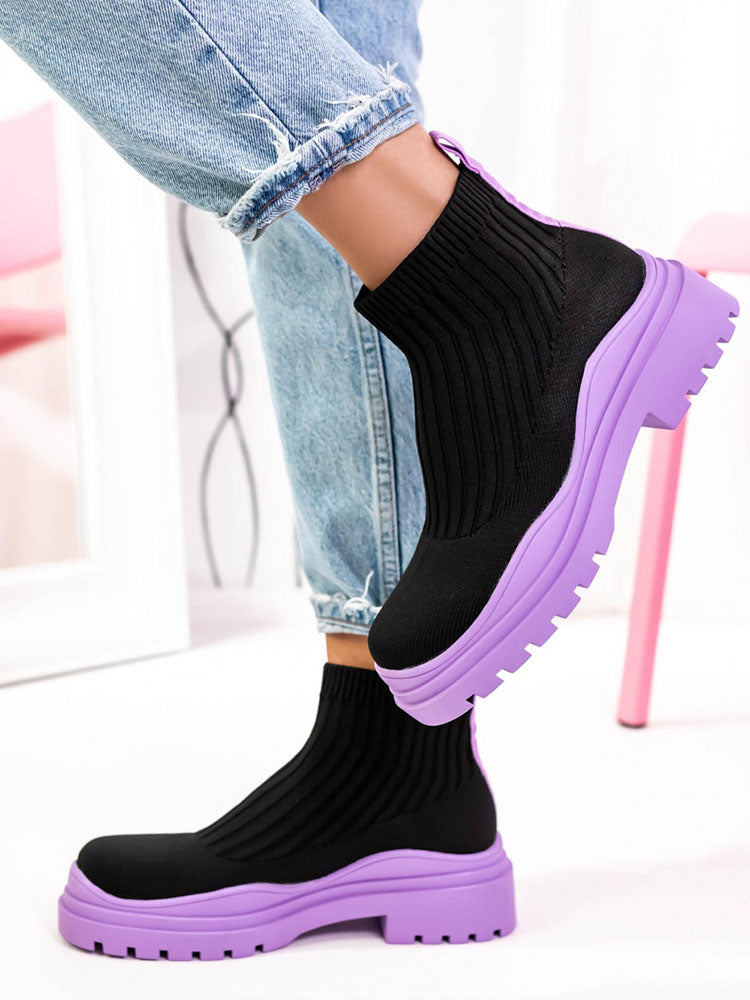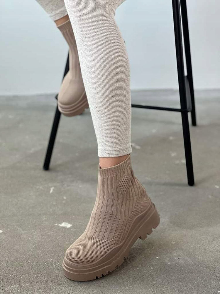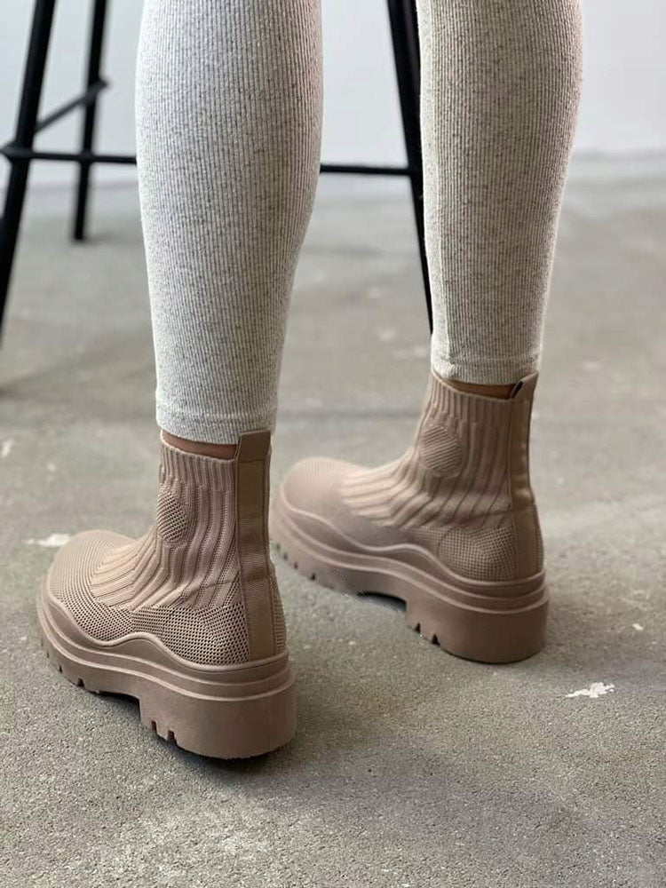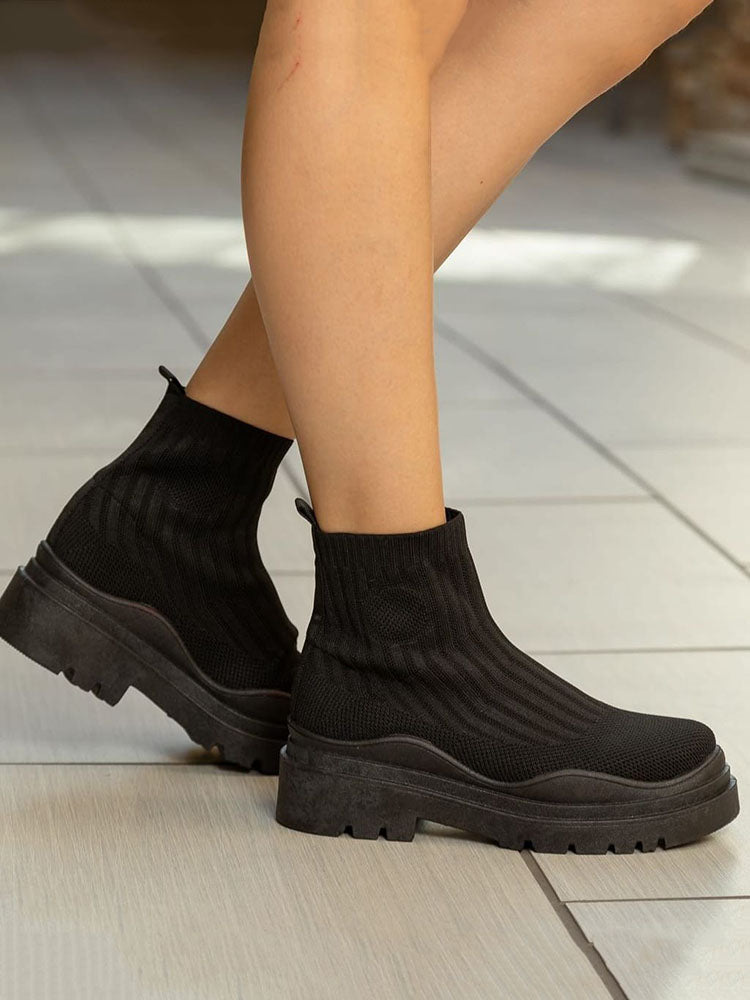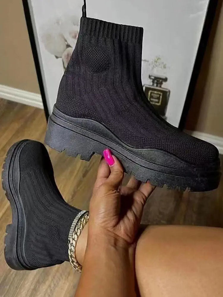 Platform Round Toe Knit Boots