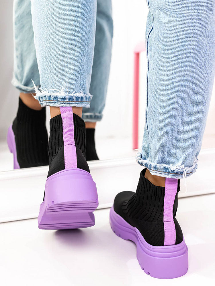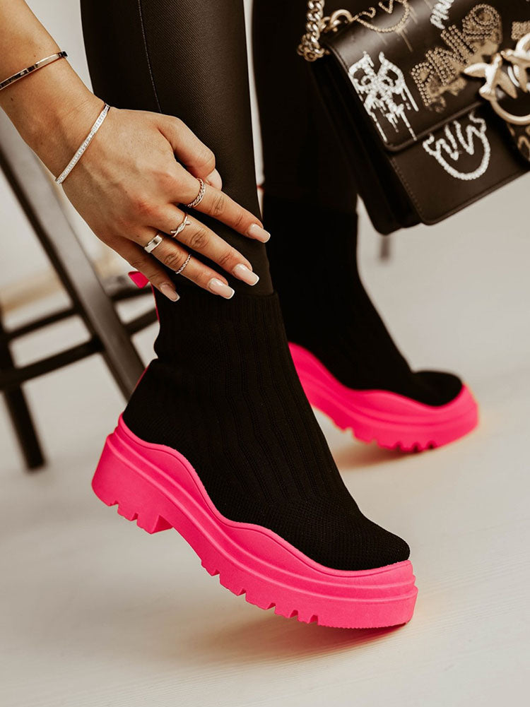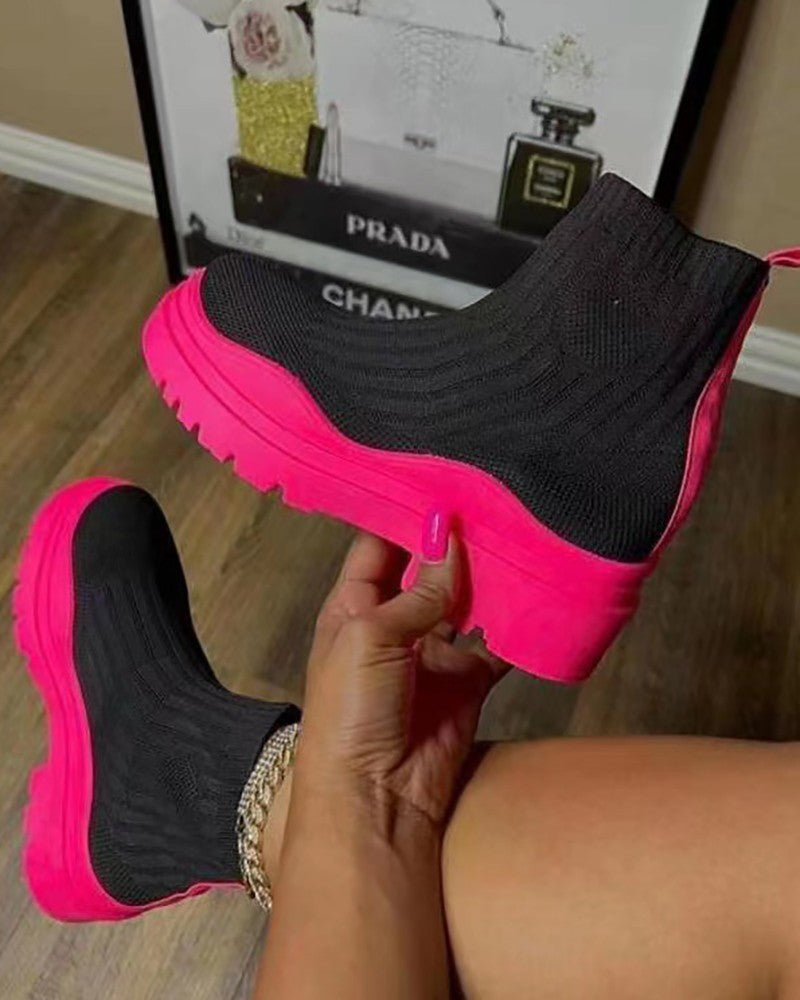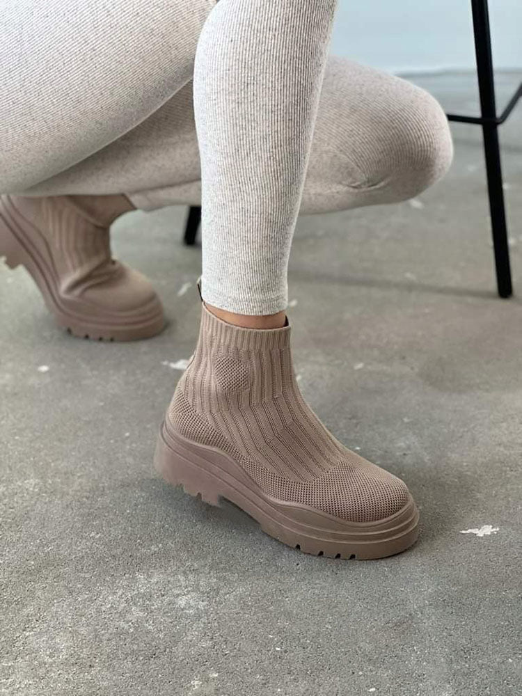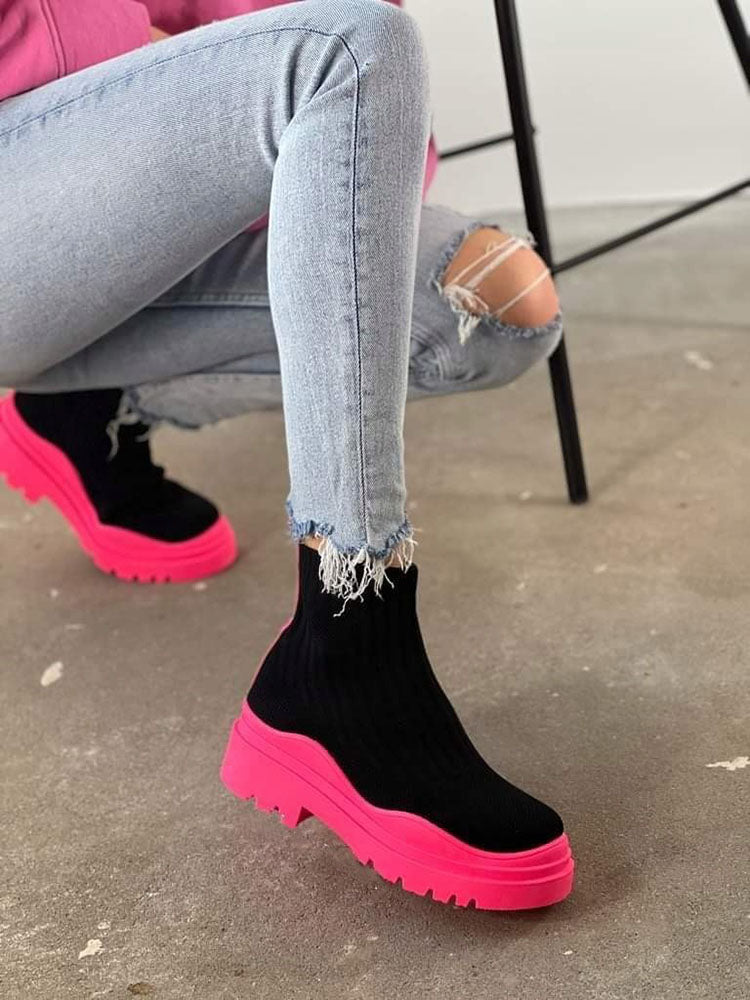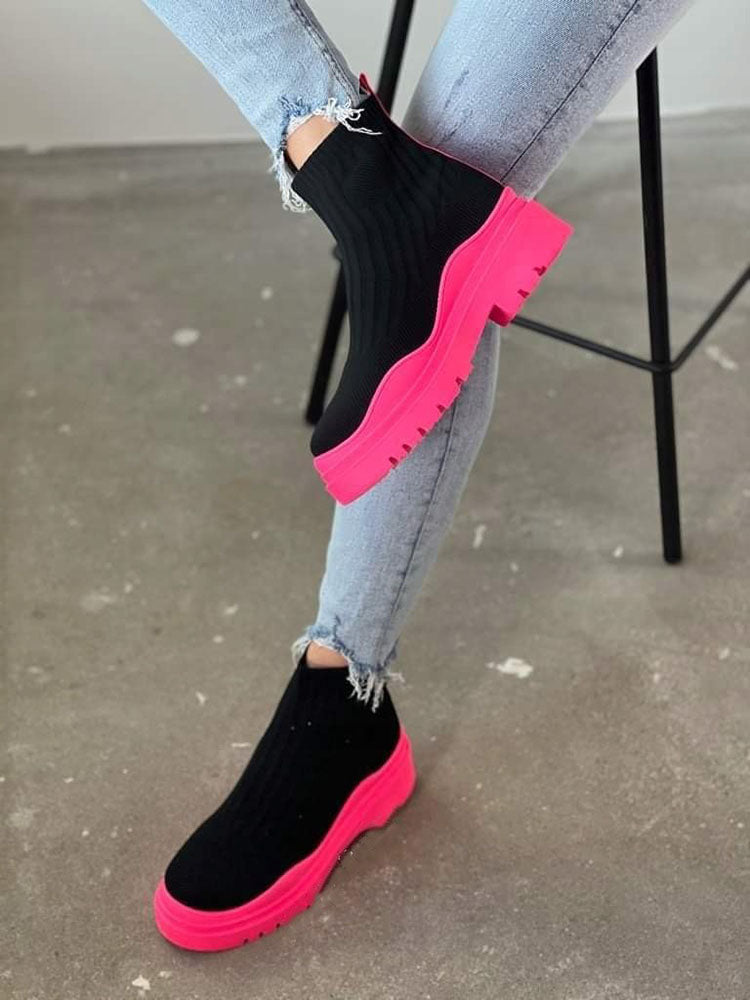 Platform Round Toe Knit Boots