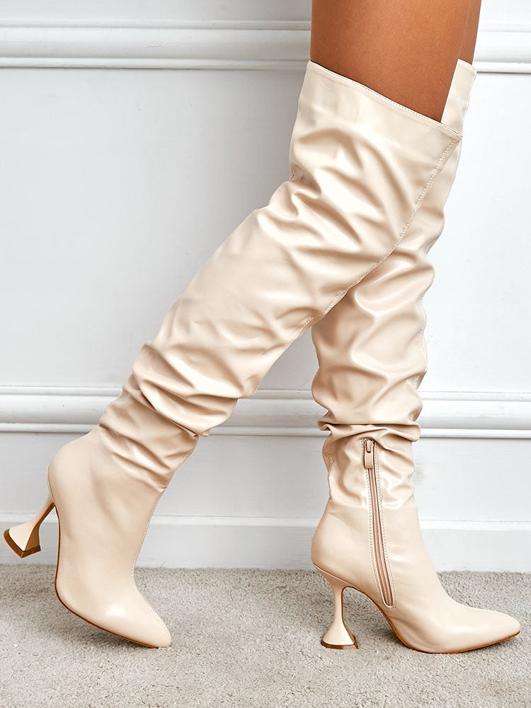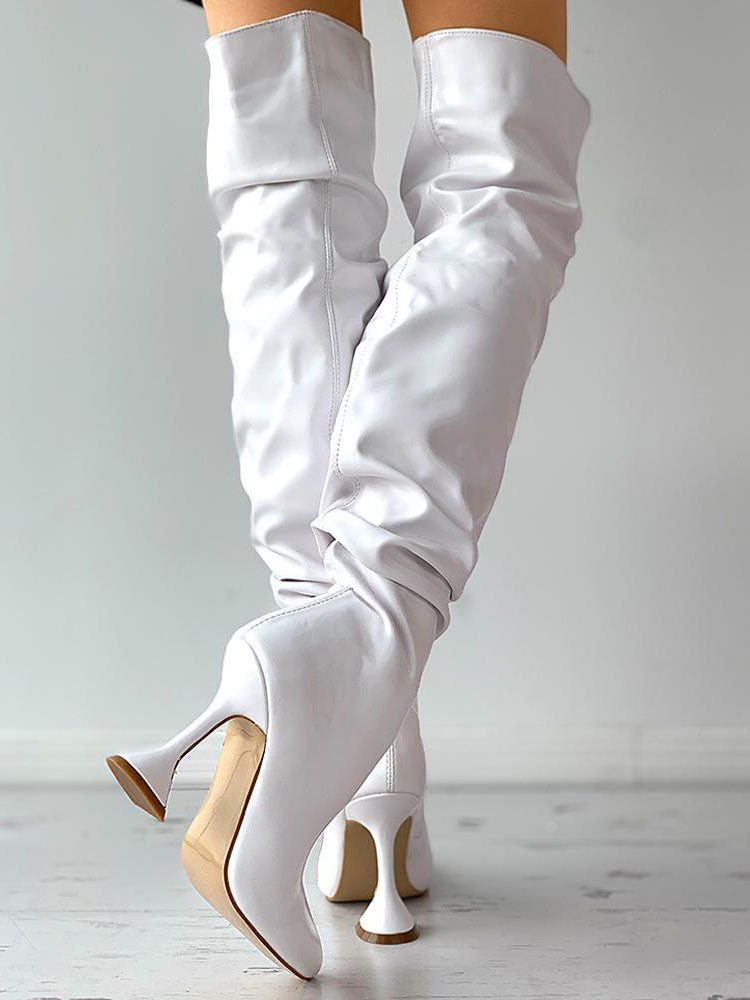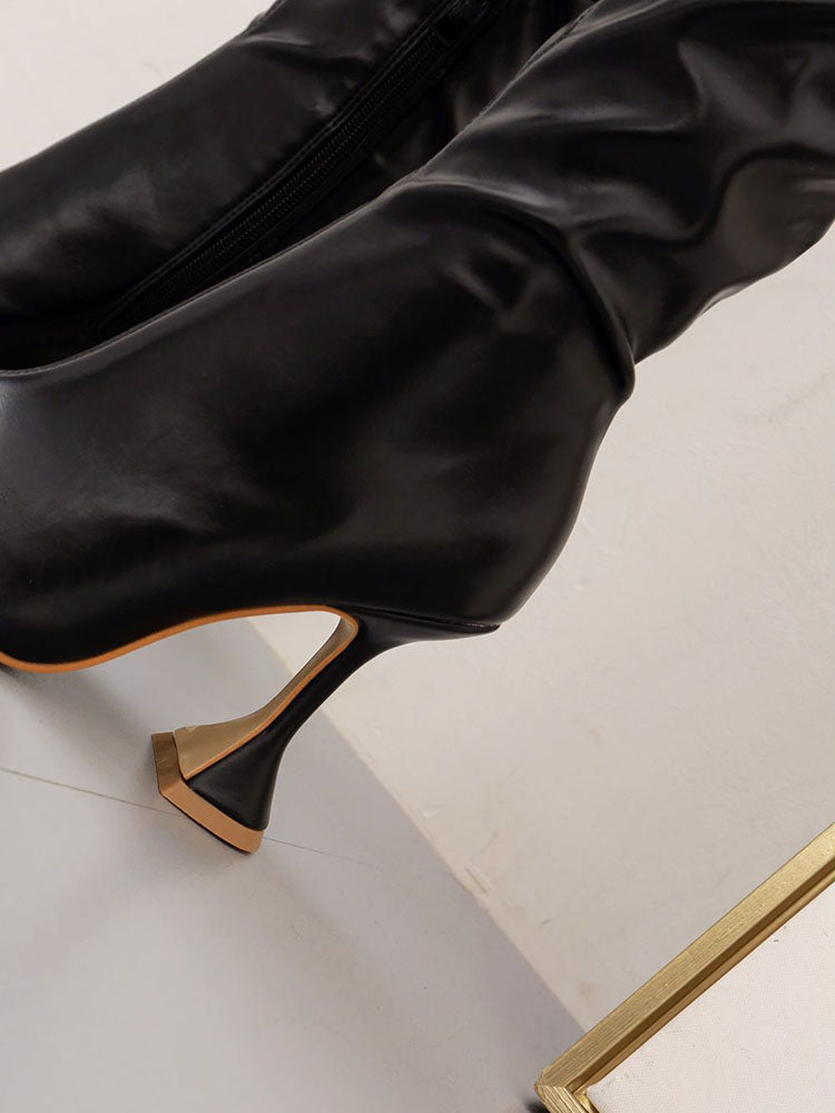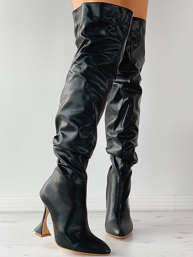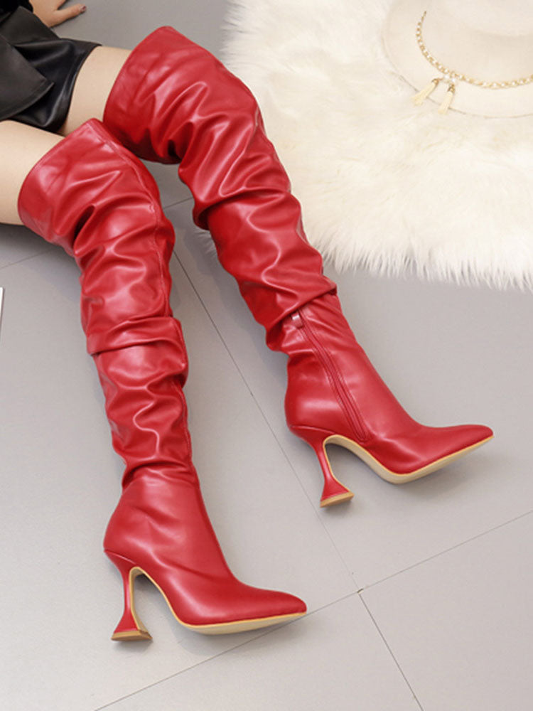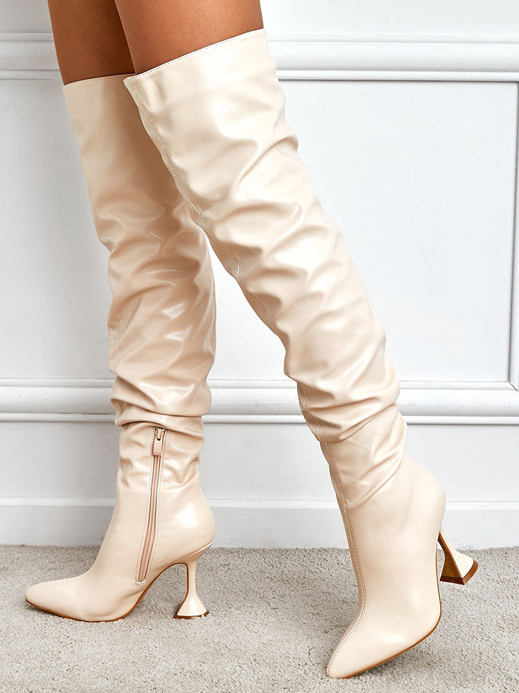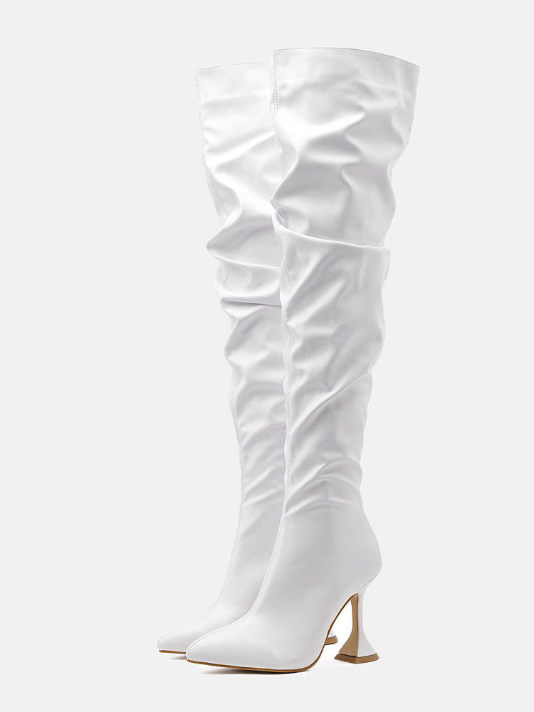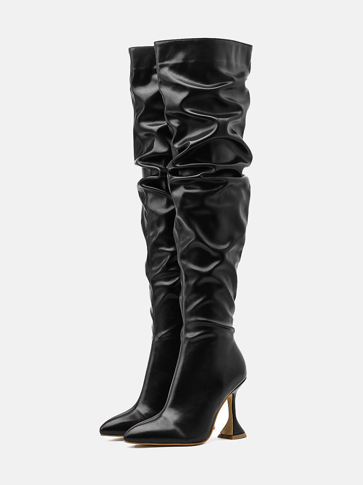 Pointed Toe Sculptural Heeled Over The Knee Boots