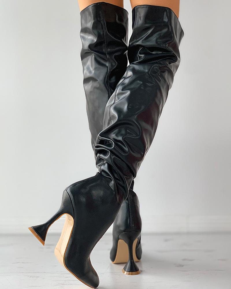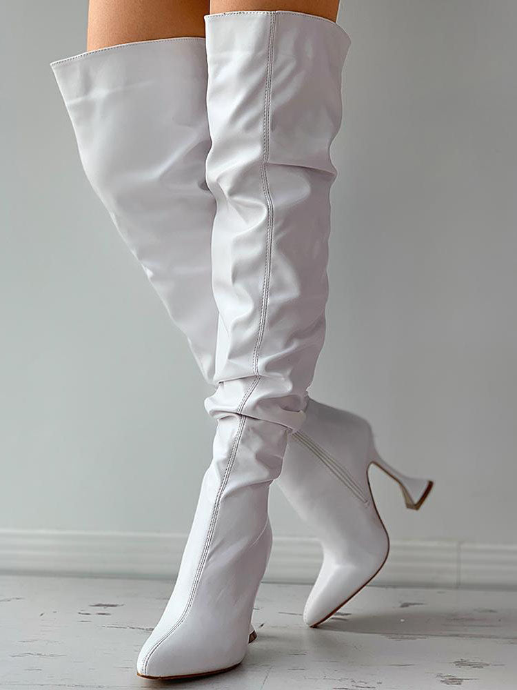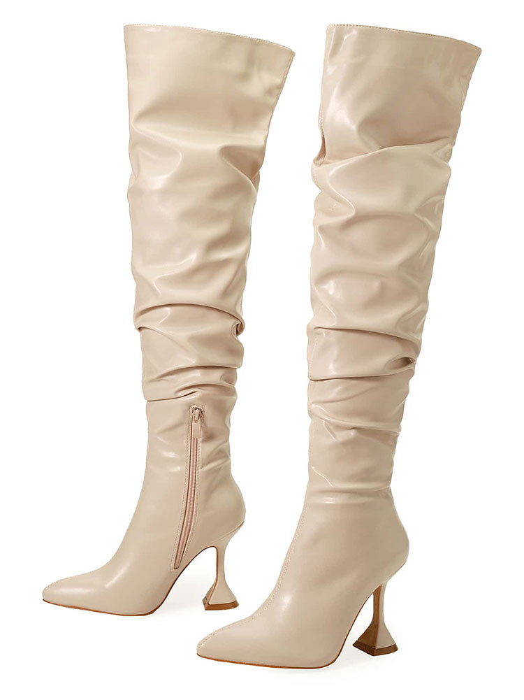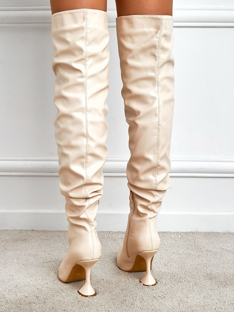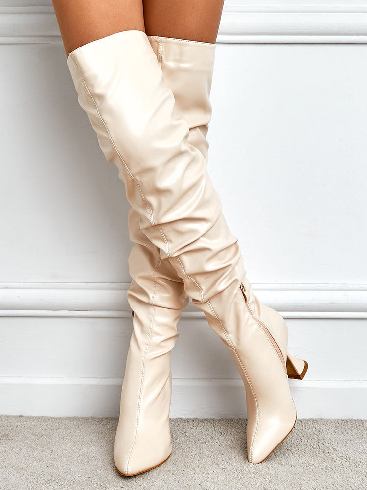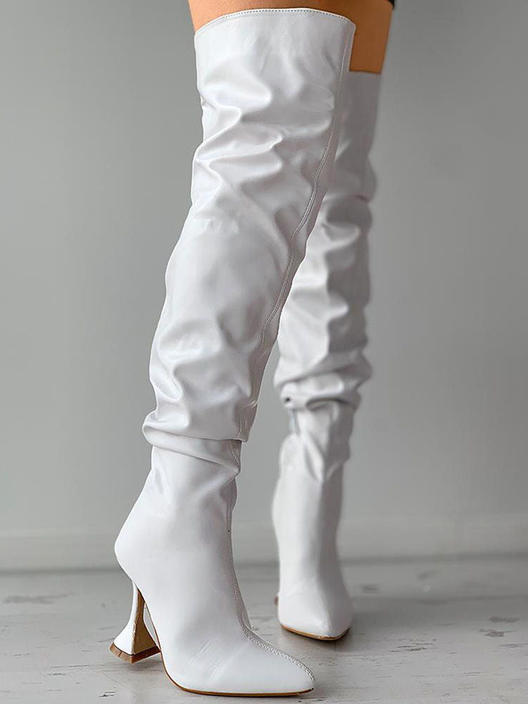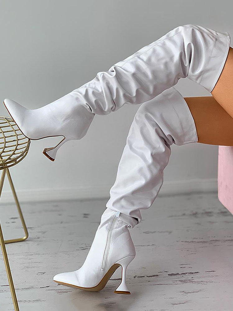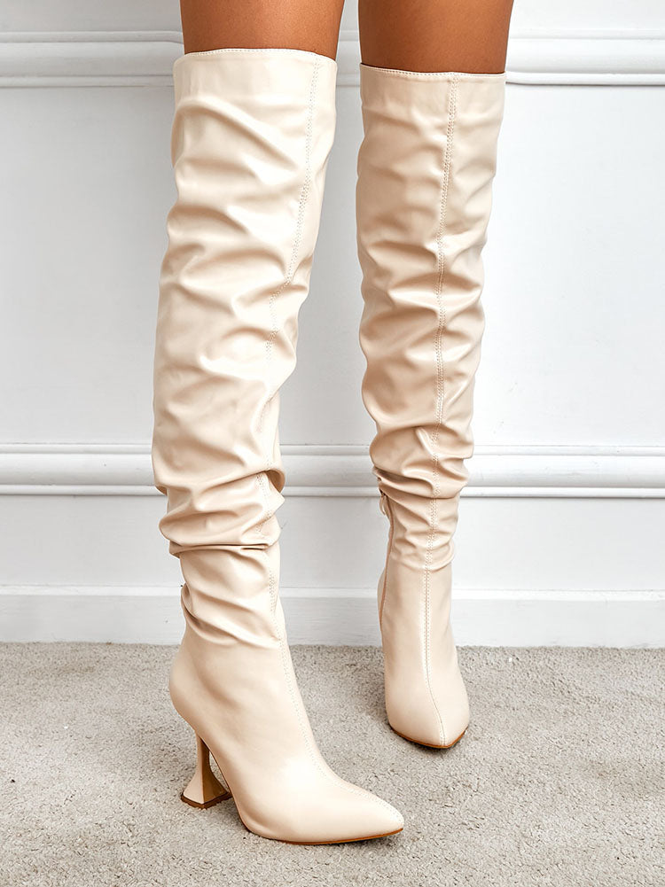 Pointed Toe Sculptural Heeled Over The Knee Boots