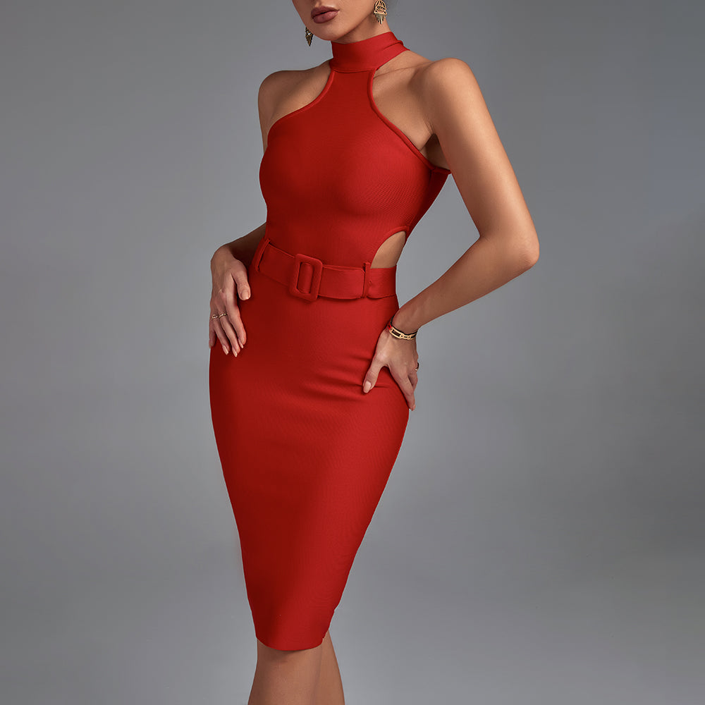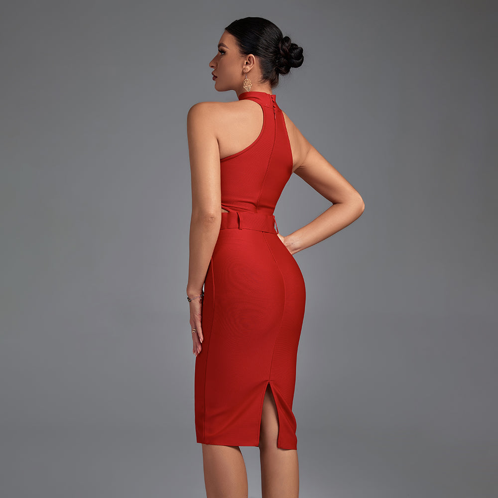 High Neck Sleeveless Cut Out With Belt Bandage Dress