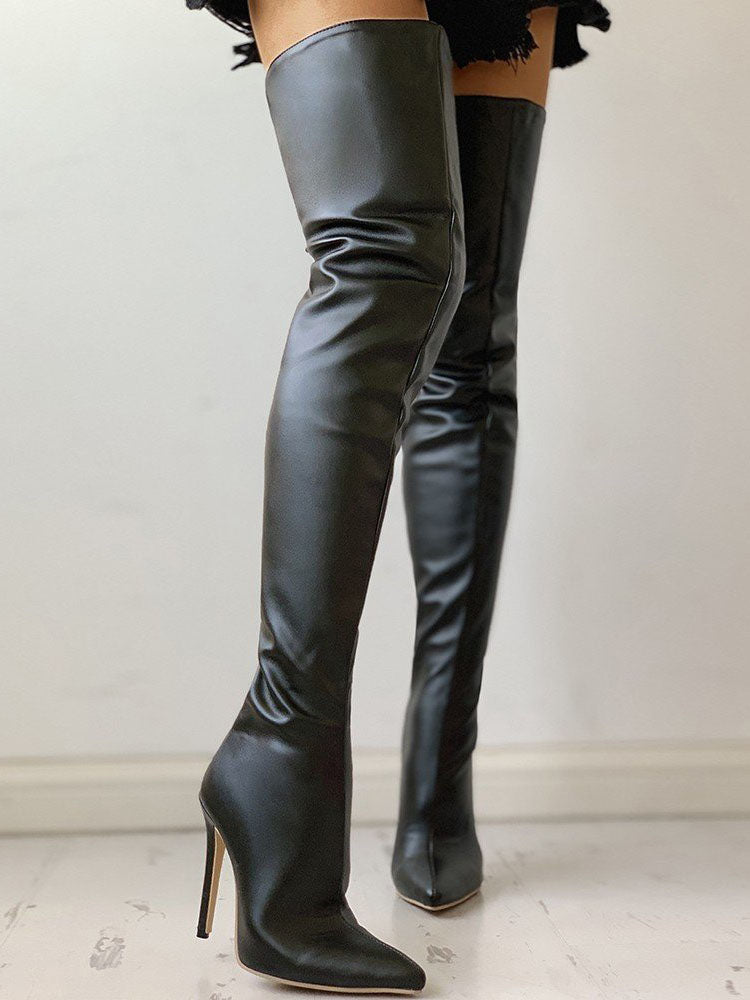 PU Zipper Stiletto Heeled Over Knee Boots