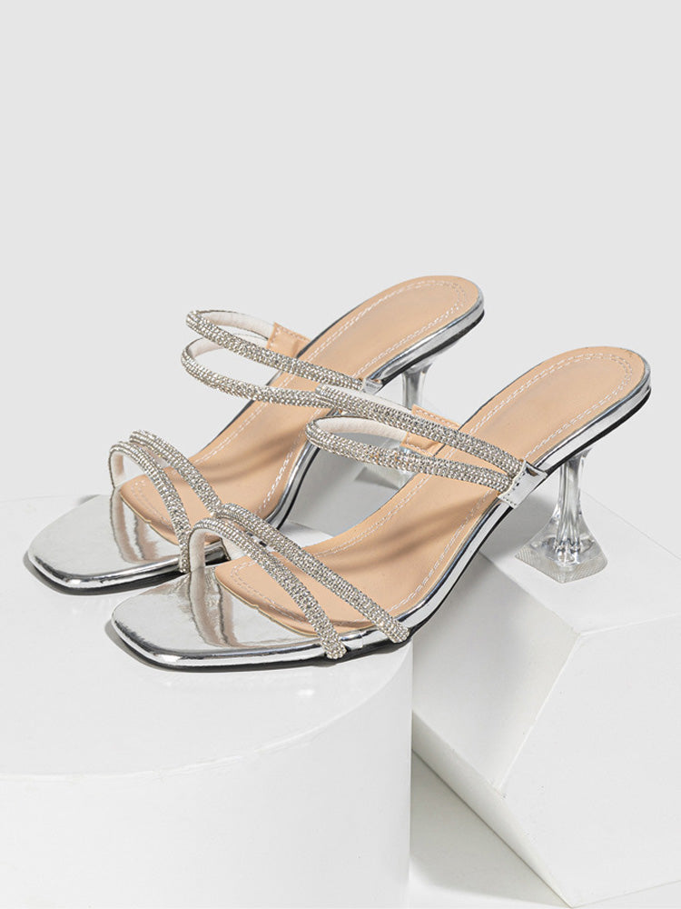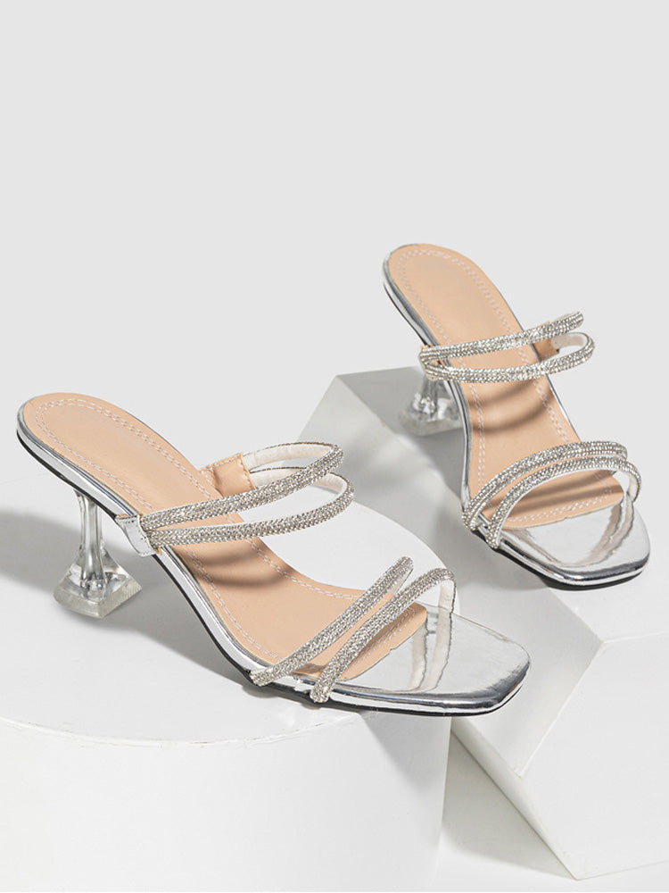 Rhinestone Heeled Sandals ï¼?Slides