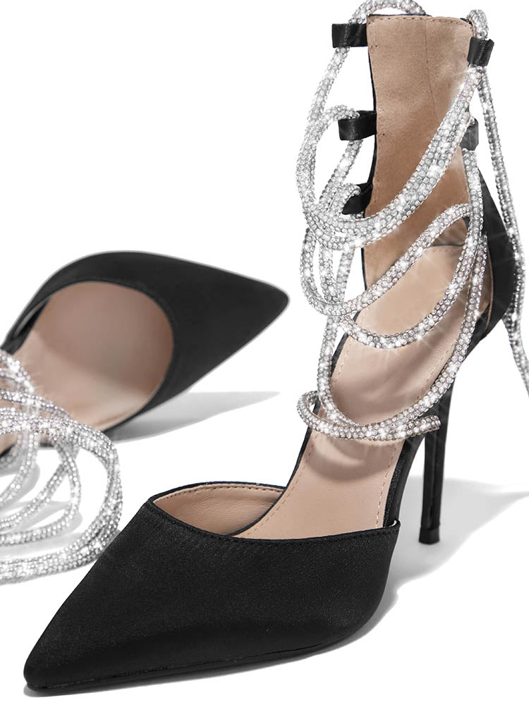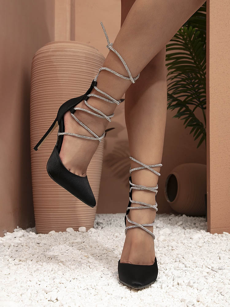 Rhinestone Lace-up Heels
