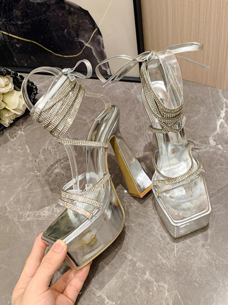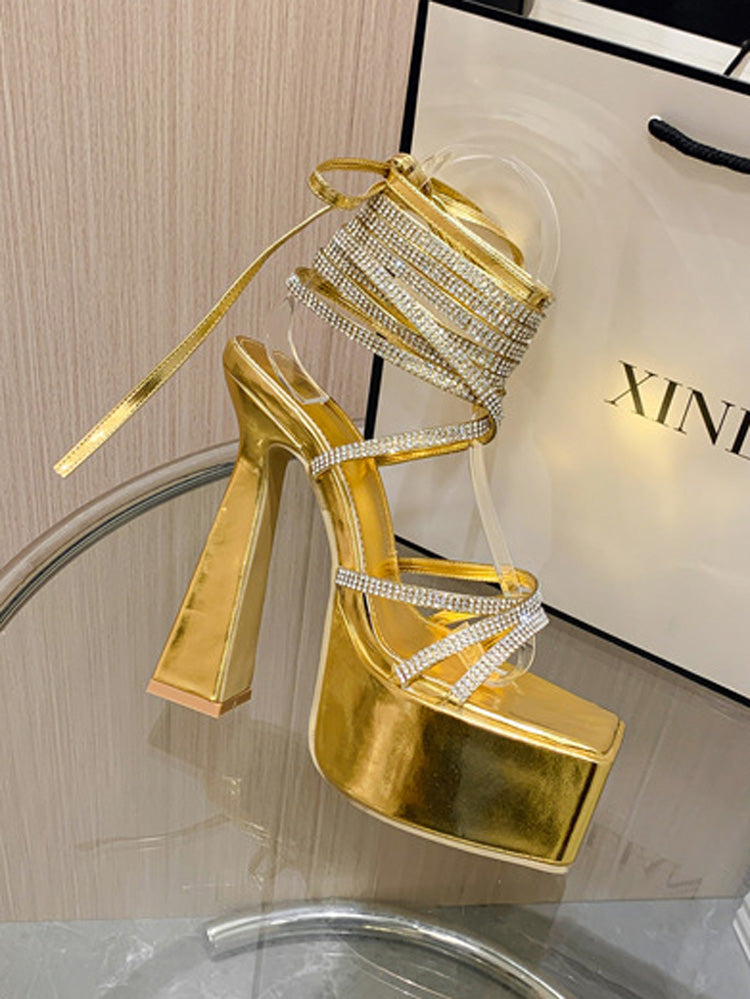 Rhinestone Lace-up Platform Heels