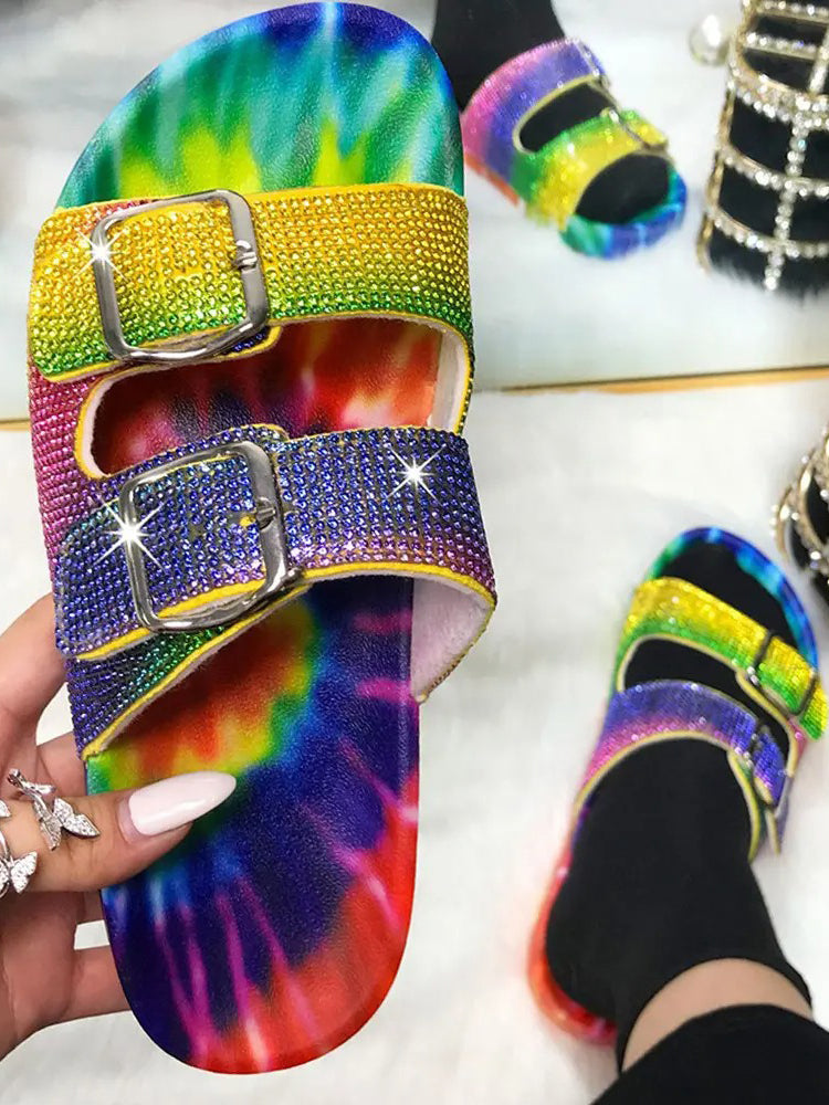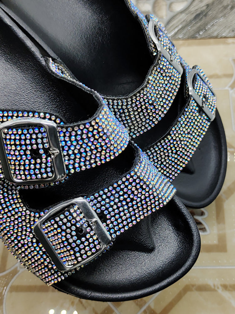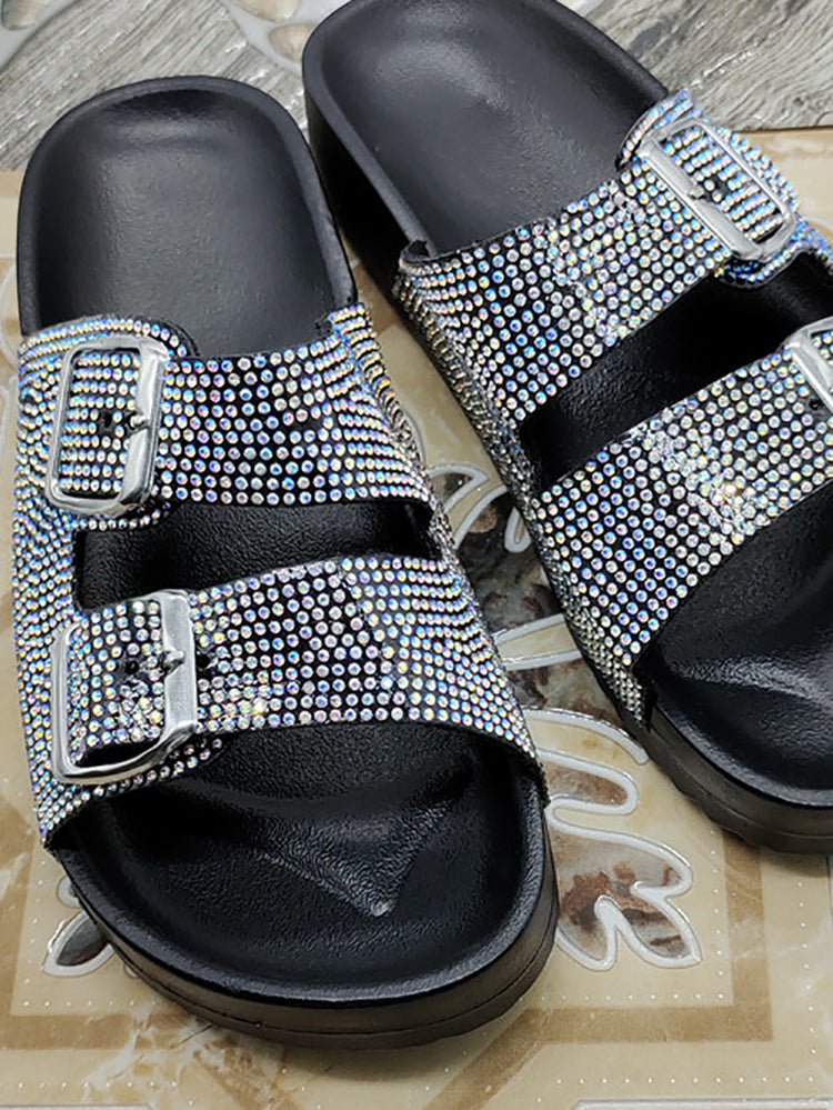 Rhinestone Twin Buckle Slippers