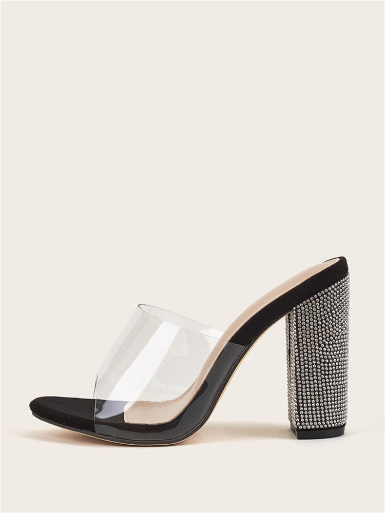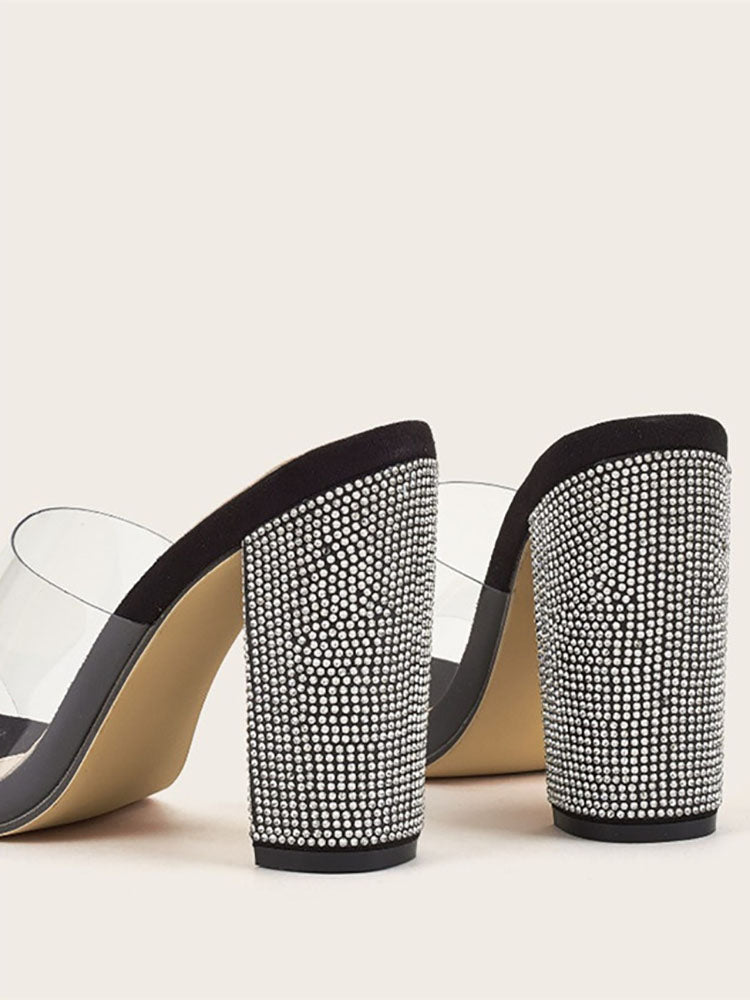Rhinestones Transparent Chunky Heel