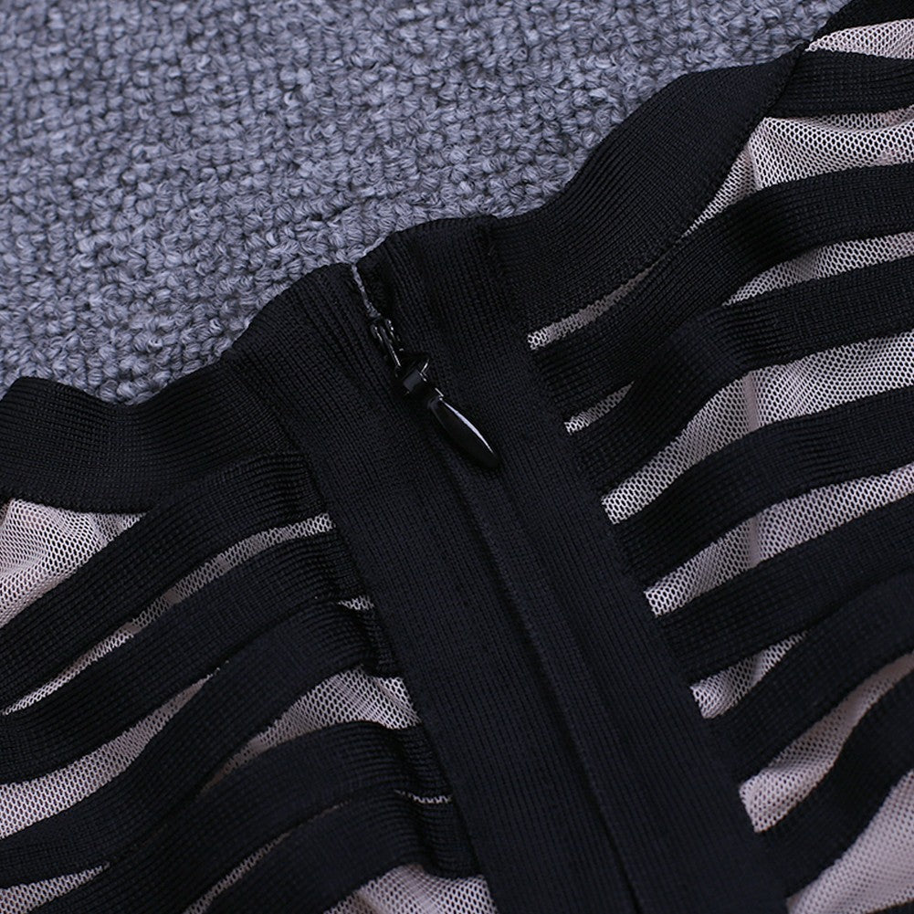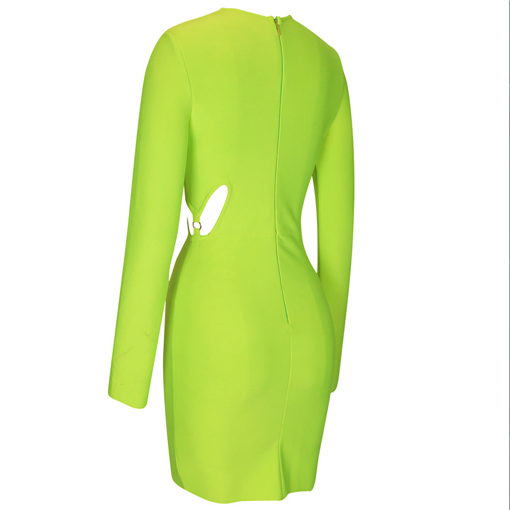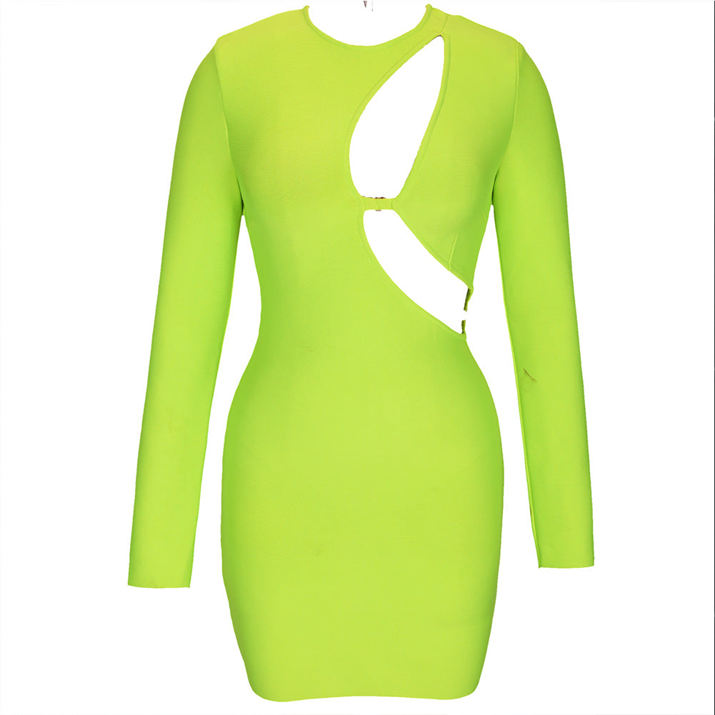 Round Neck Long Sleeve Hollow Out Mini Bandage Dress HJ442