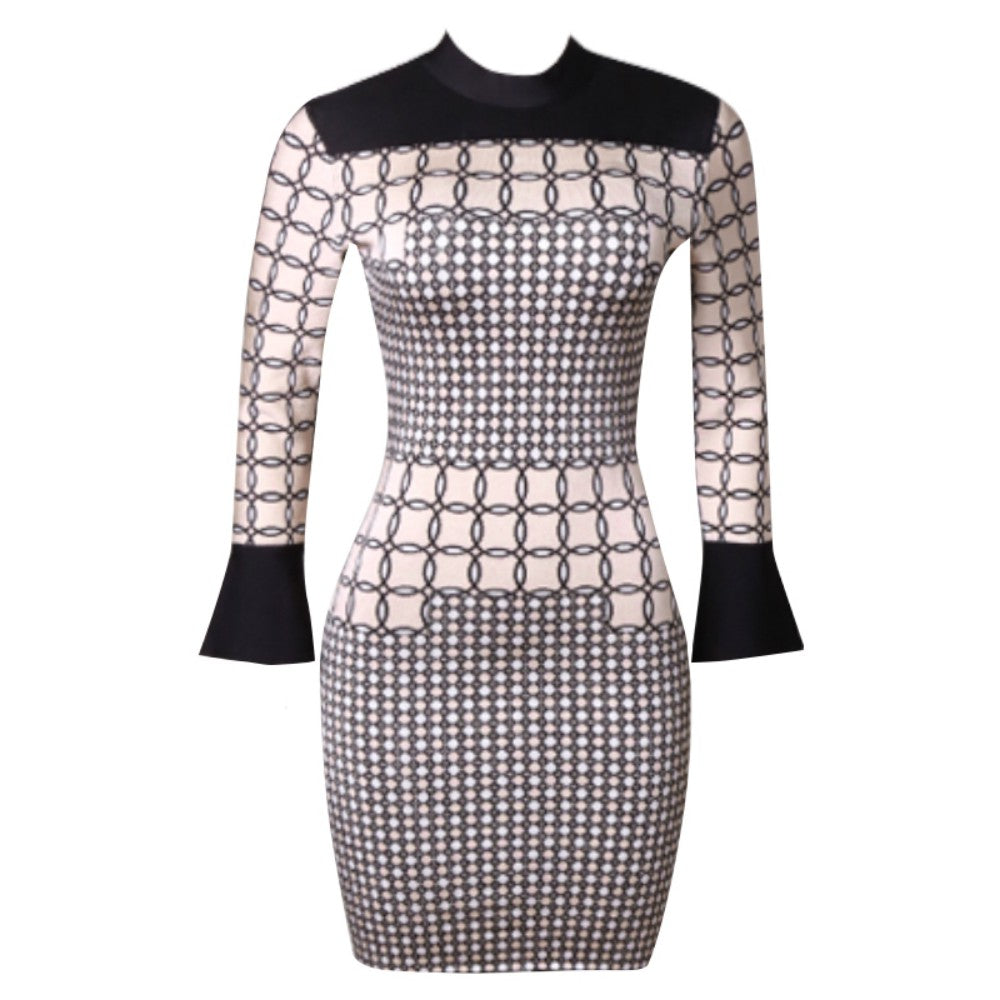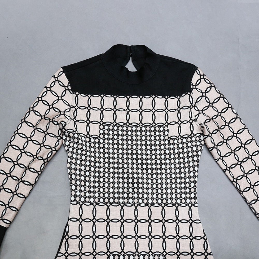 Round Neck Long Sleeve Mini Backless Bandage Dress