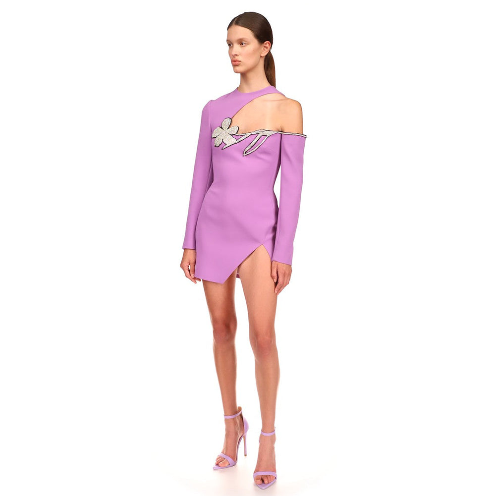 Round Neck Long Sleeve Mini Cut Out Bandage Dress
