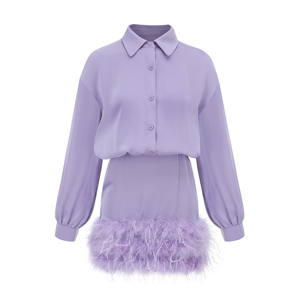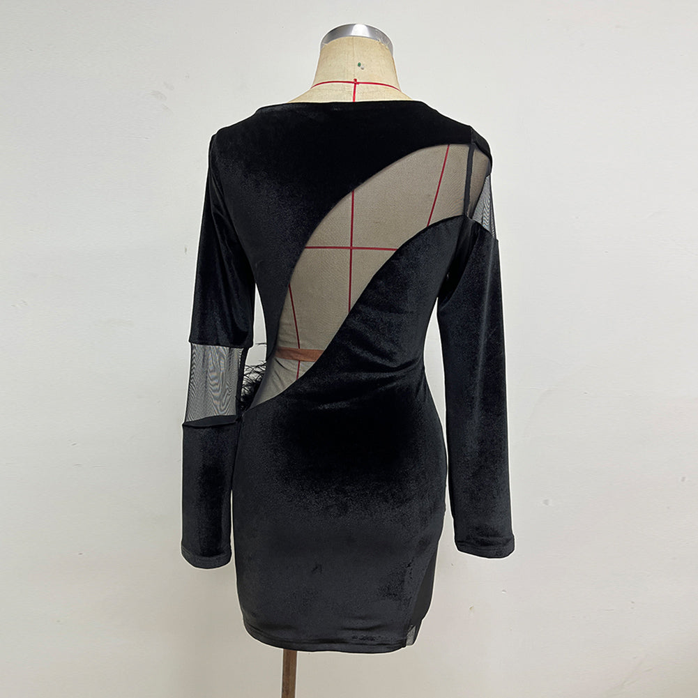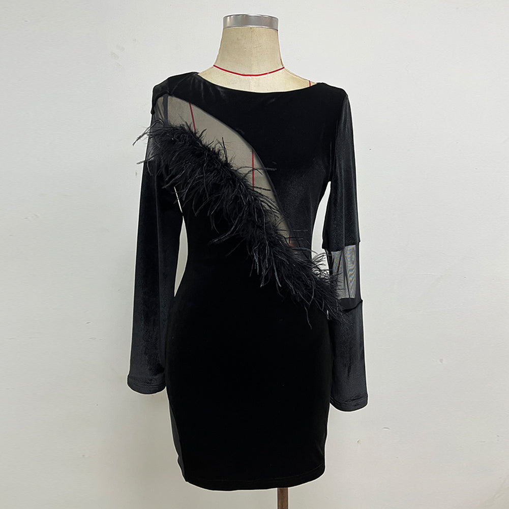 Round Neck Long Sleeve Mini Feather Bodycon Dress