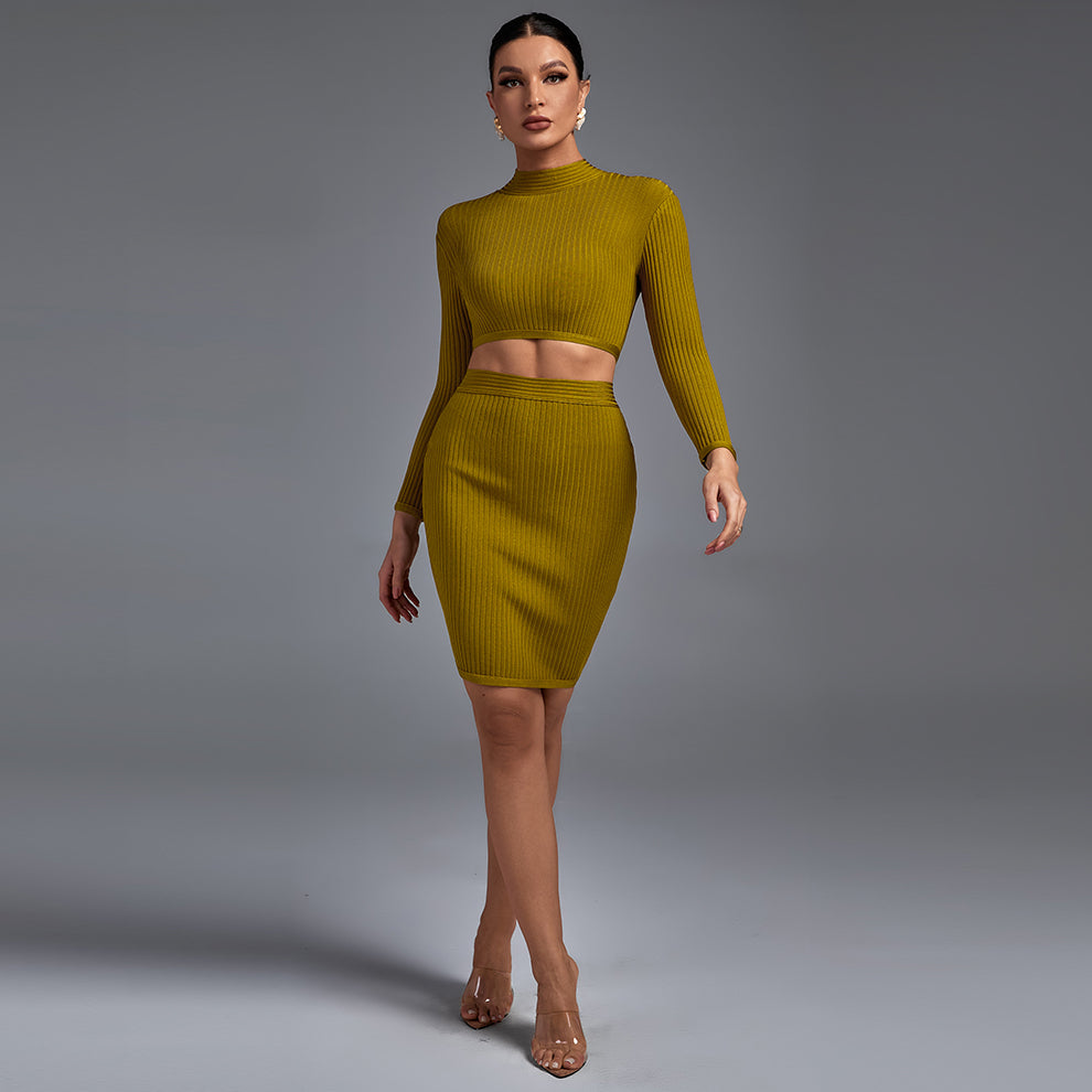 Round Neck Long Sleeve Simpleness Mini Bandage Set