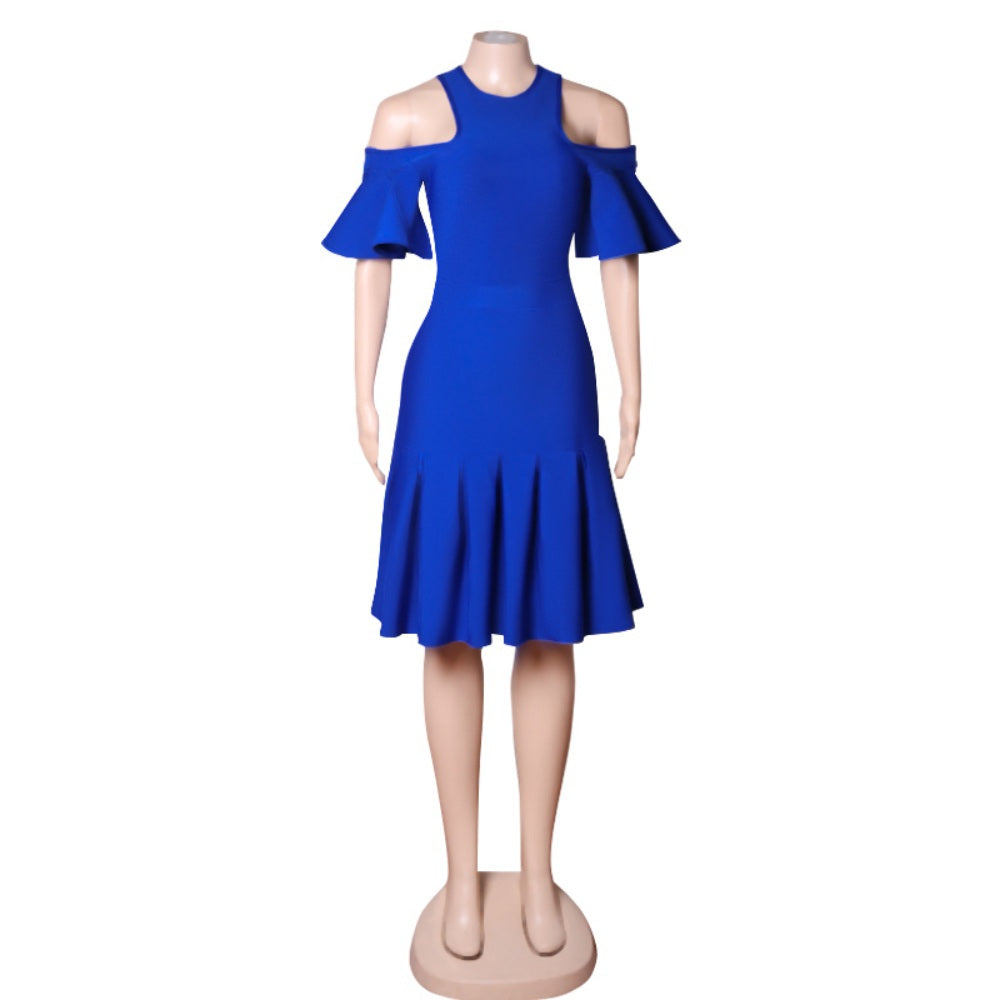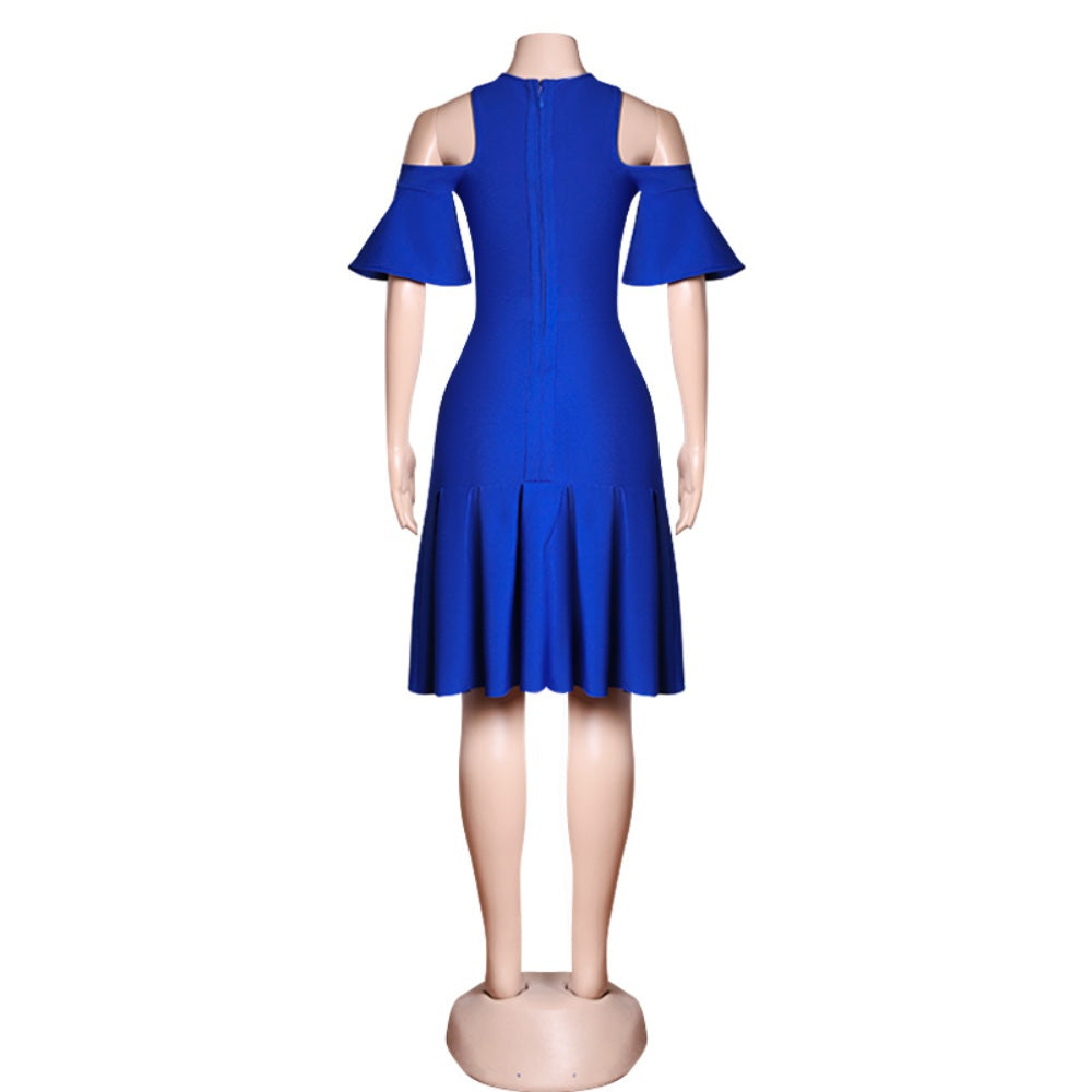 Round Neck Short Sleeve Midi Pleated Bandage Dress
