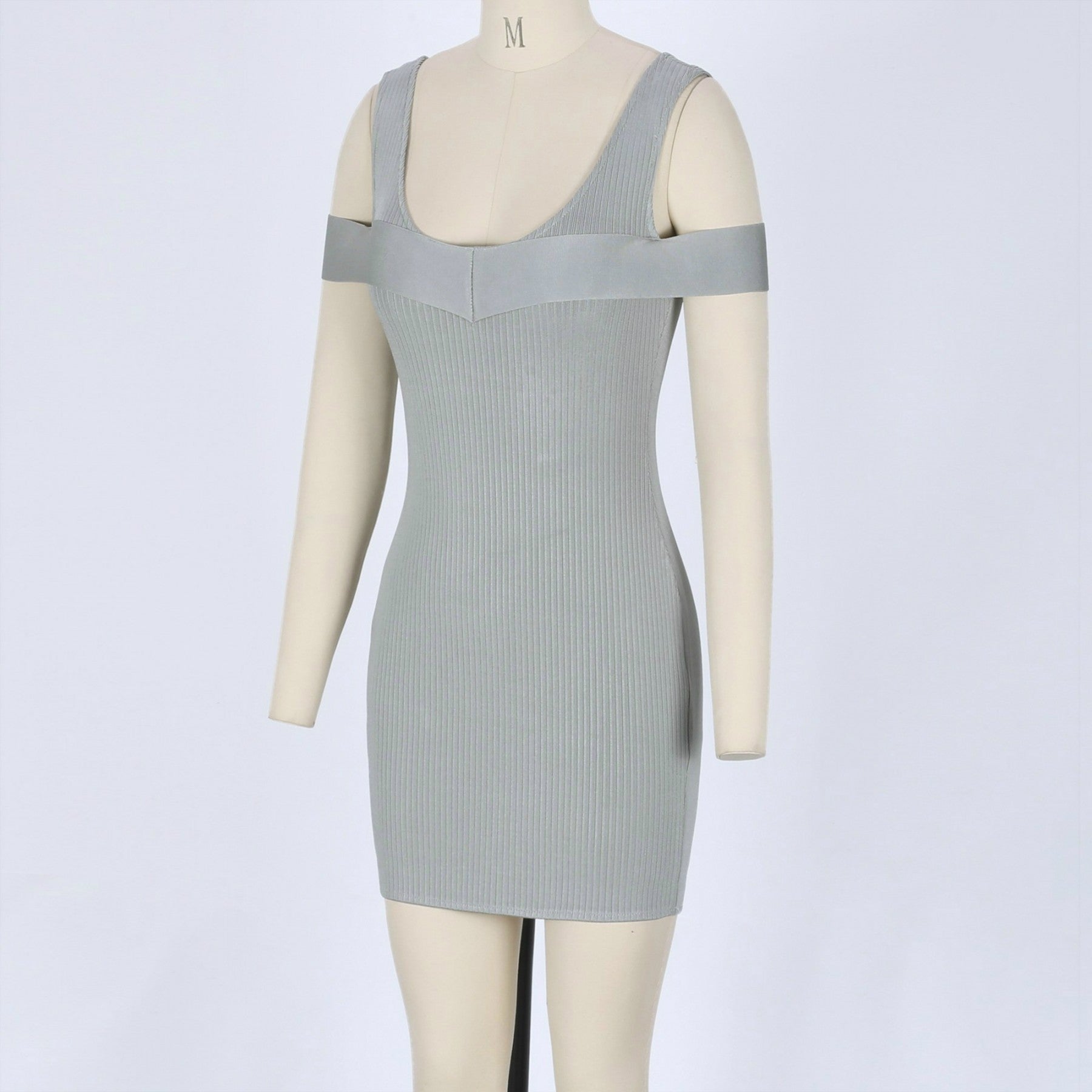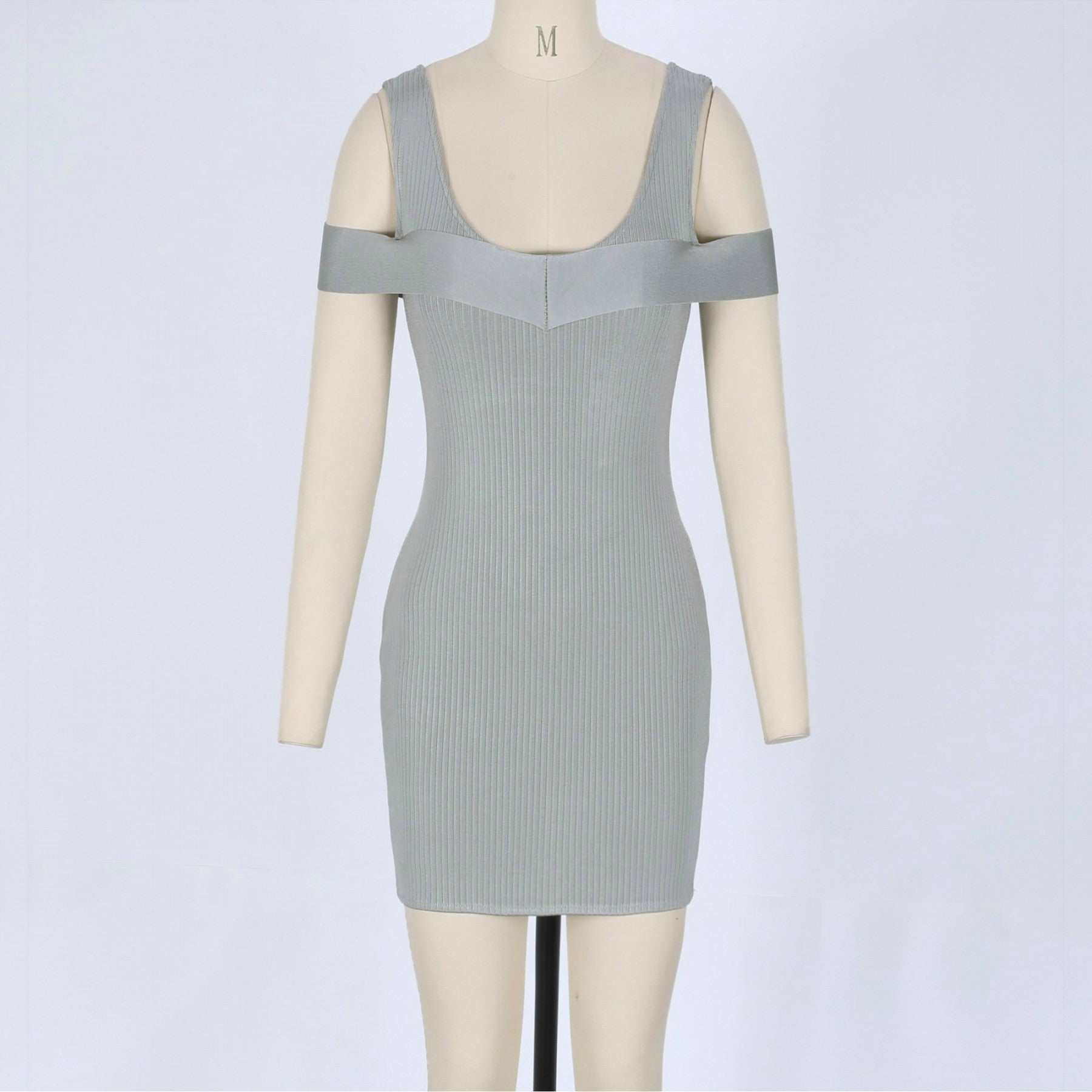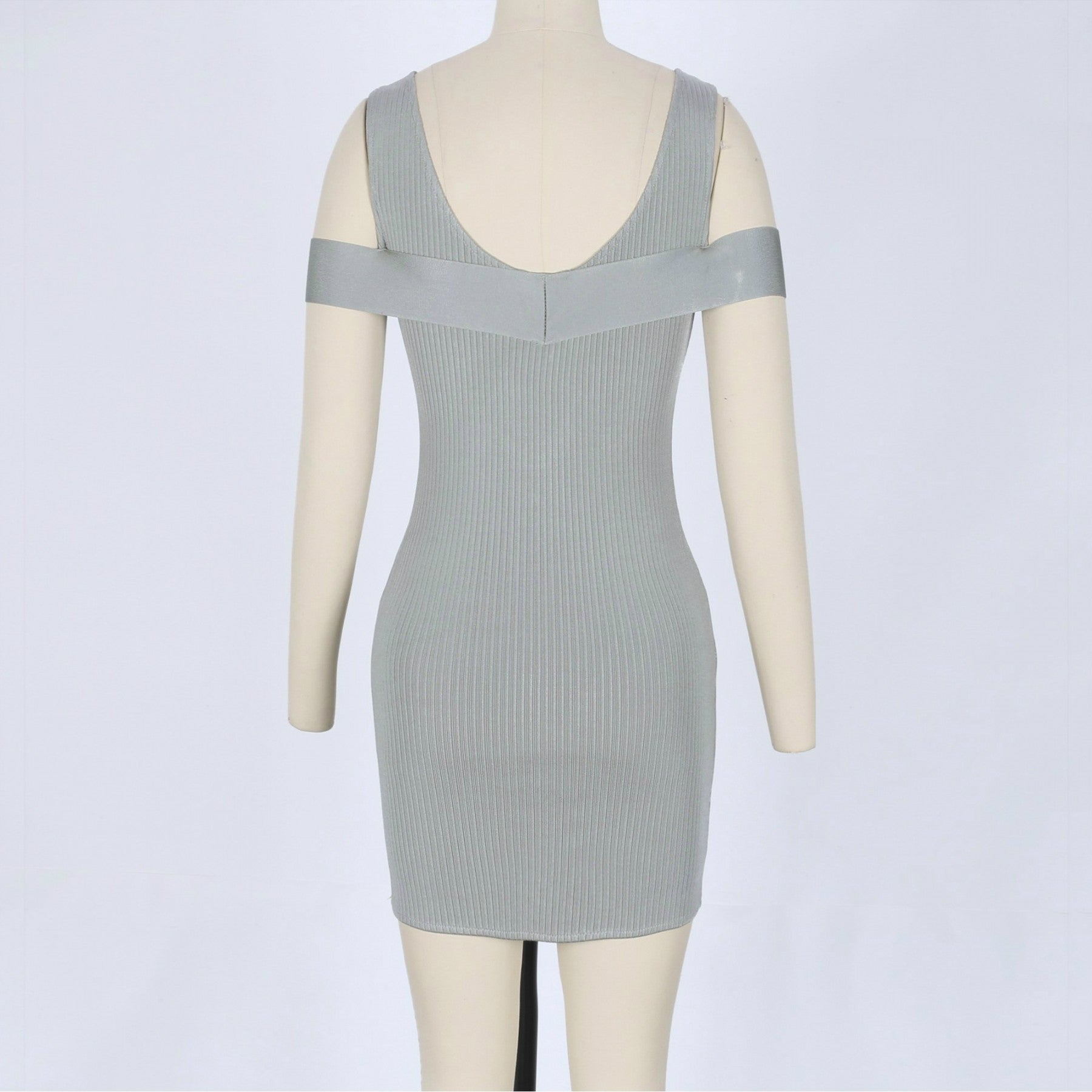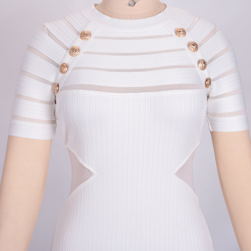 Round Neck Short Sleeve Striped Mini Bandage Dress
