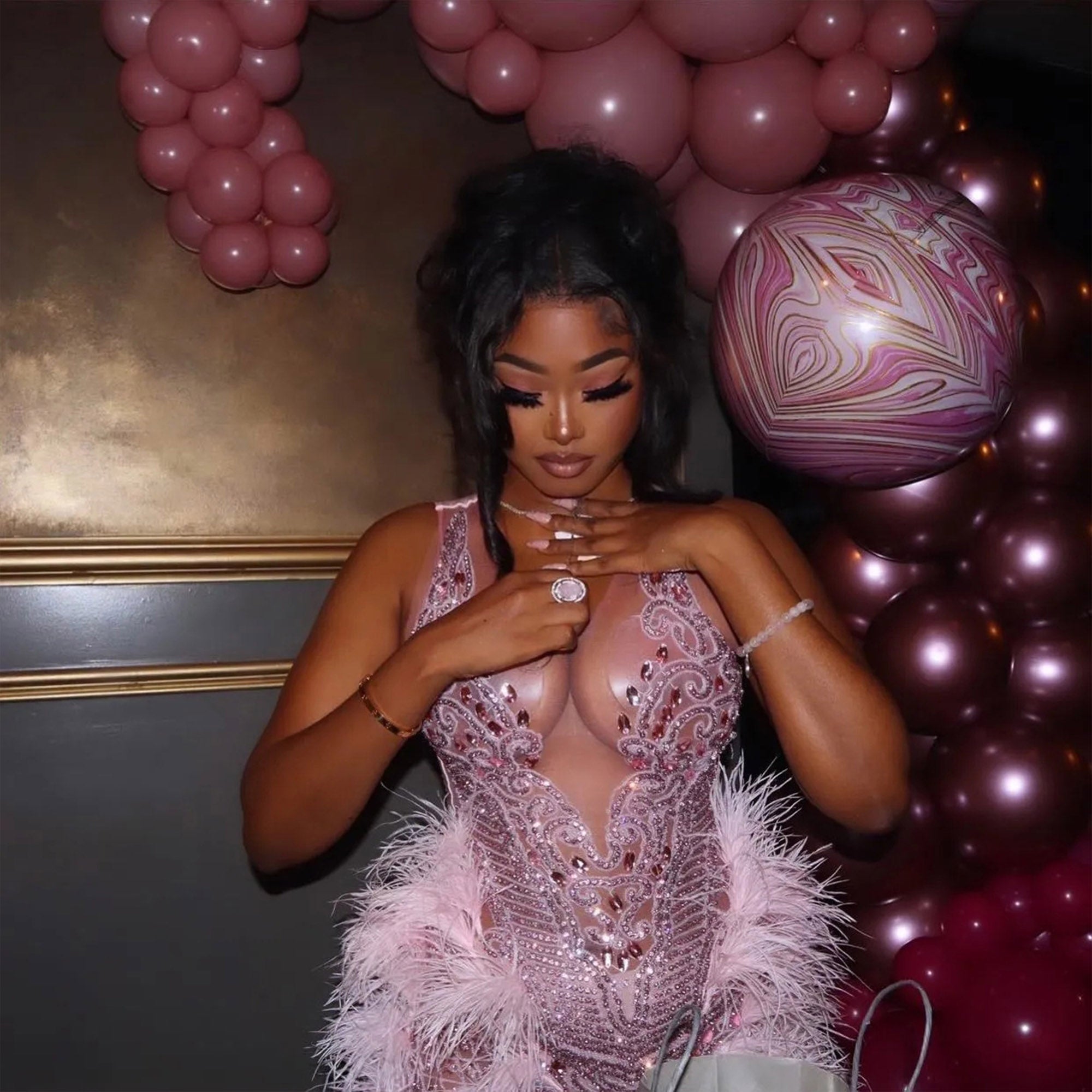 Round Neck Sleeveless Diamond Feather Mini Exclusive Custom Dress TH26006