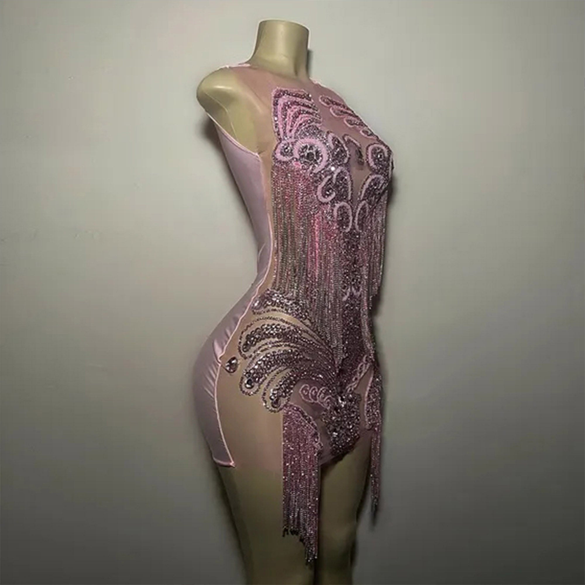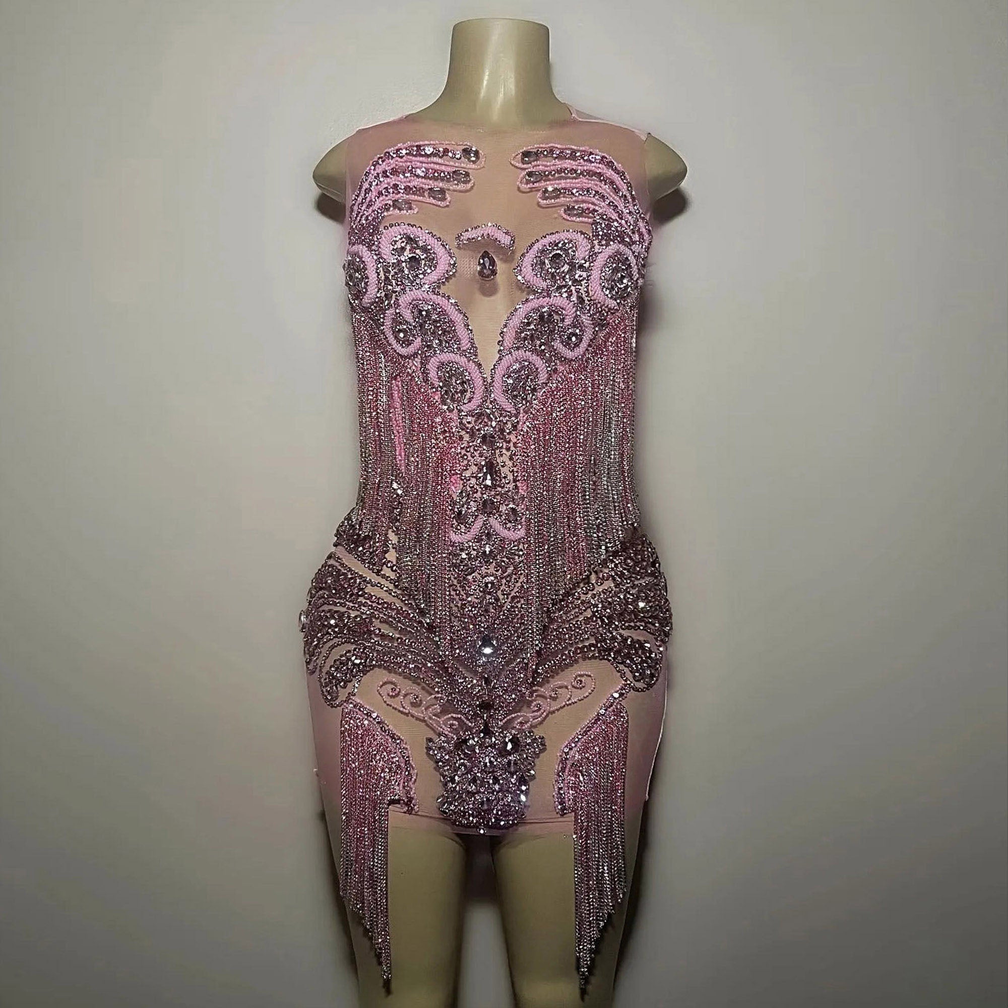 Round Neck Sleeveless Diamond Mini Exclusive Custom Pink Dress TH26002