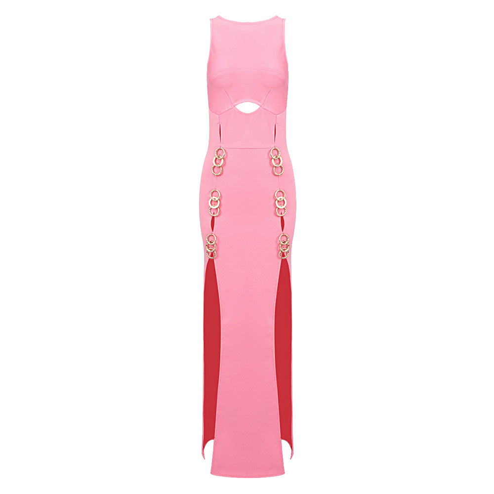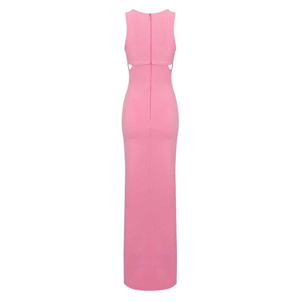 Round Neck Sleeveless Maxi Slit Bodycon Dress