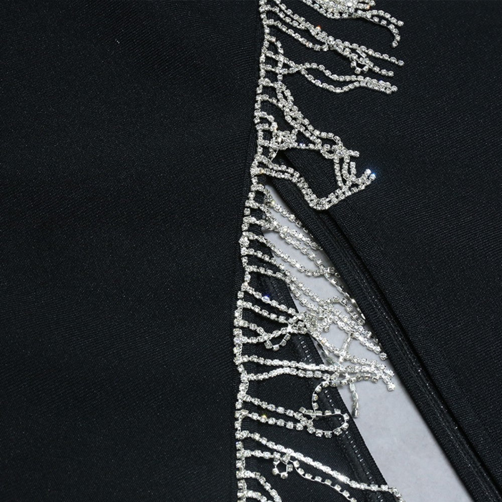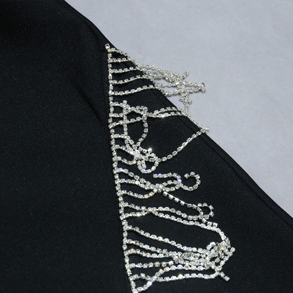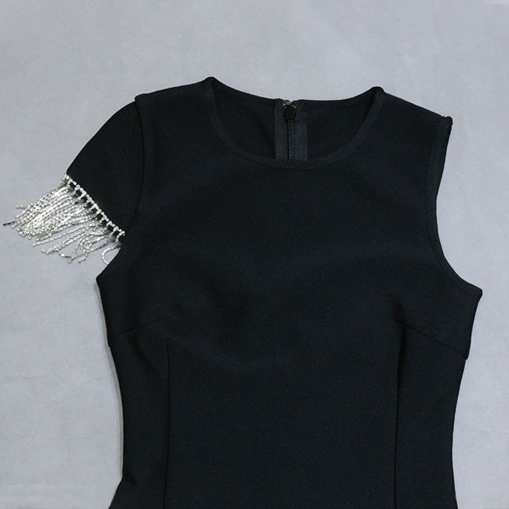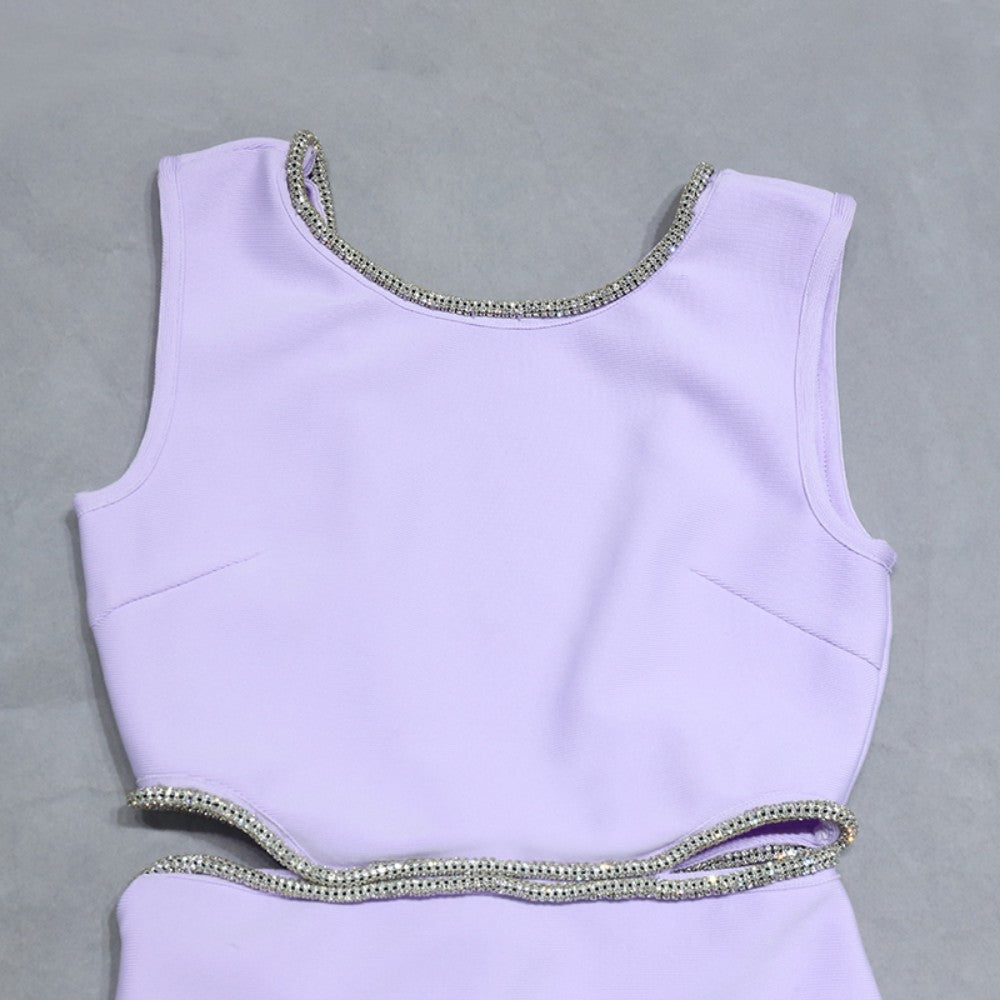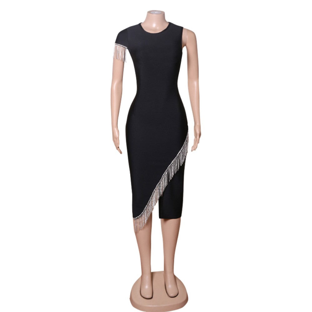 Round Neck Sleeveless Midi Drill Chain Bandage Dress