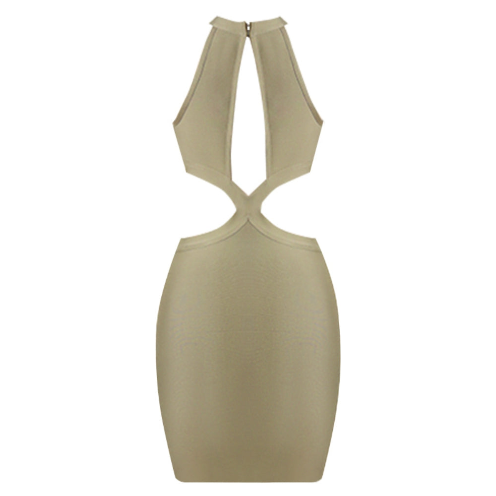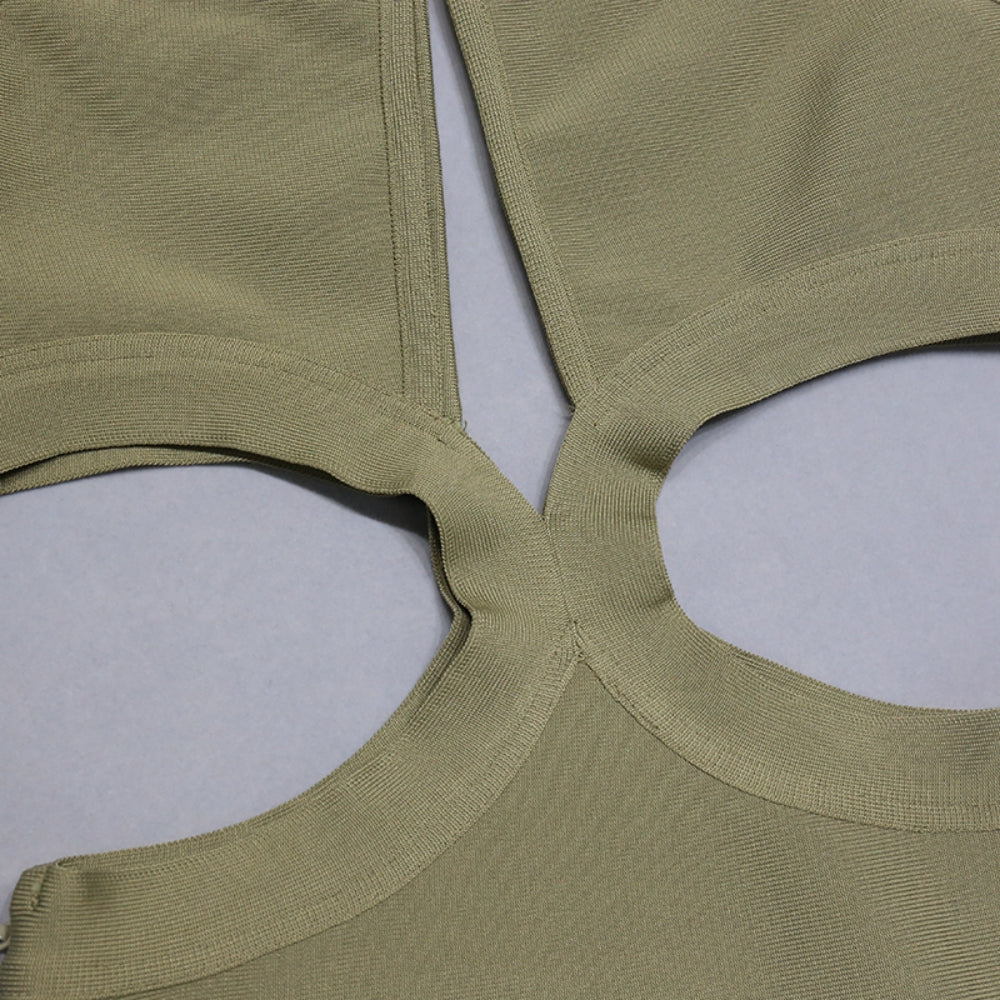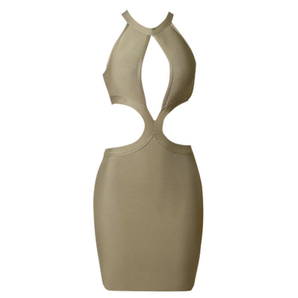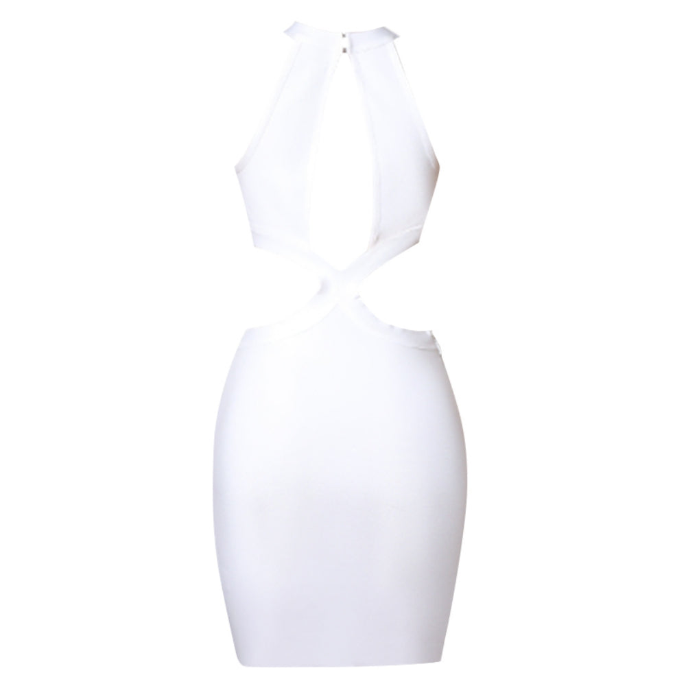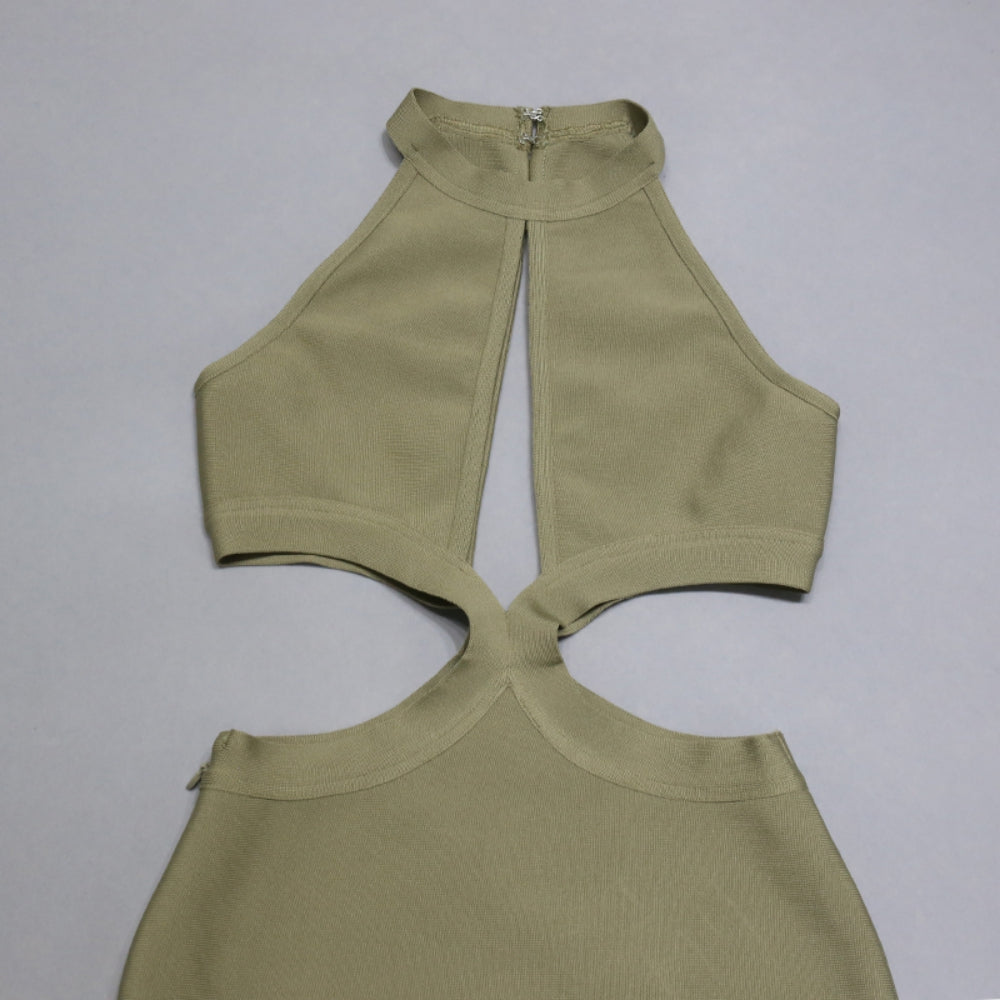 Round Neck Sleeveless Midi Hollow out Bandage Dress
