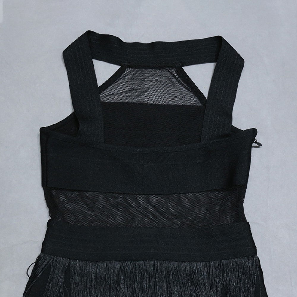 Round Neck Sleeveless Midi Tassels Bandage Dress