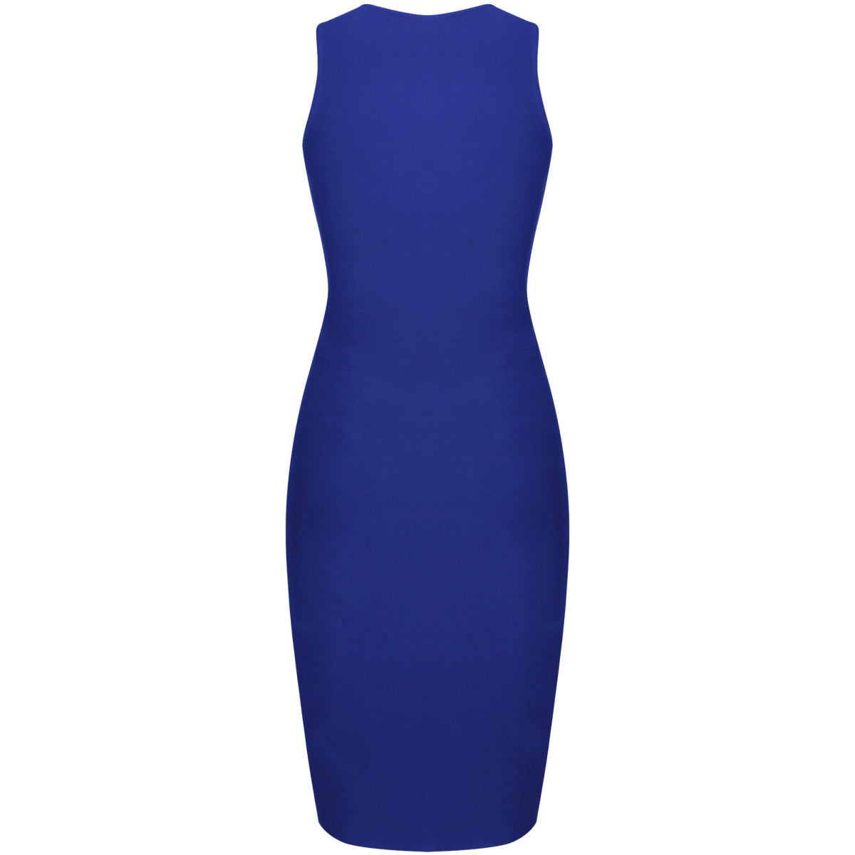 Round Neck Sleeveless Plain Over Knee Bandage Dress