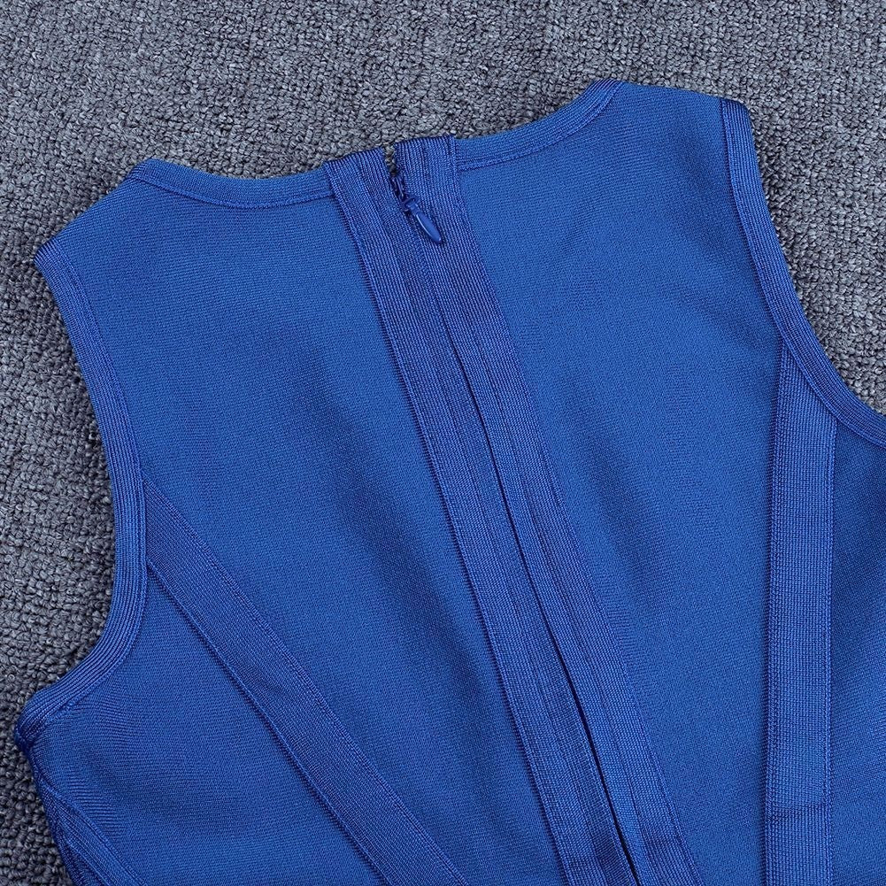 Round Neck Sleeveless Striped Mini Bandage Dress PZ19252