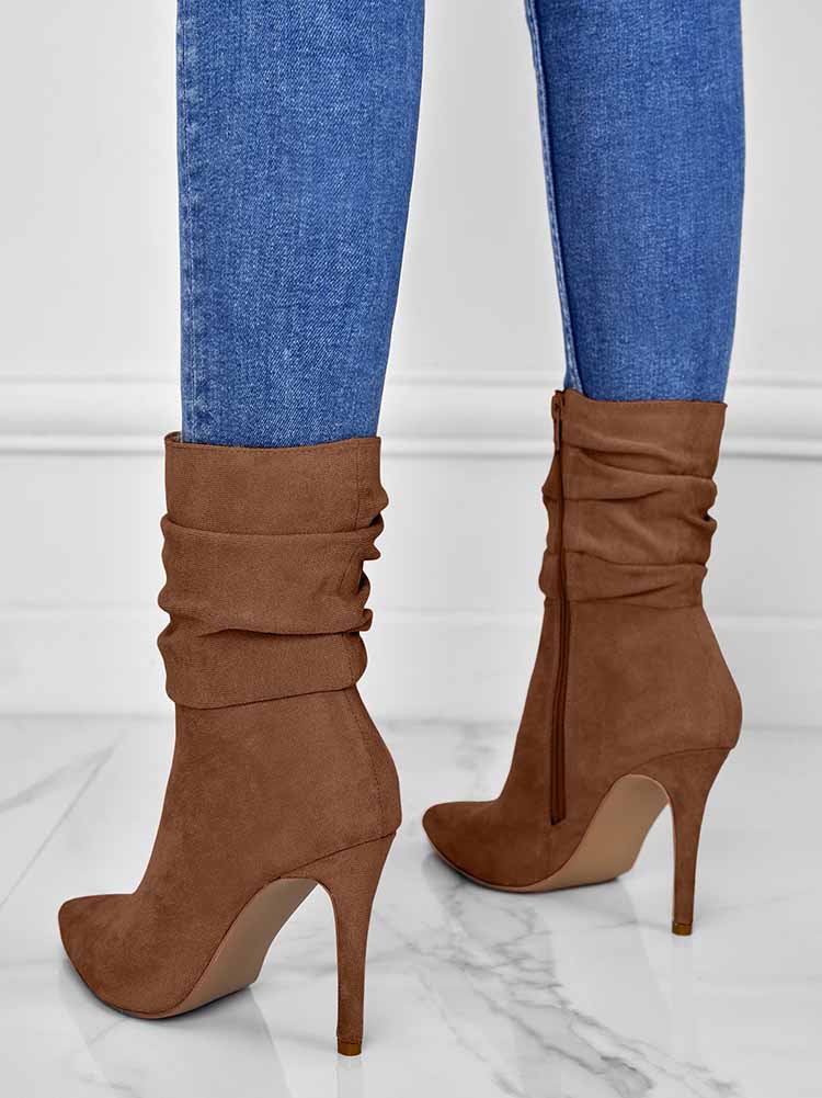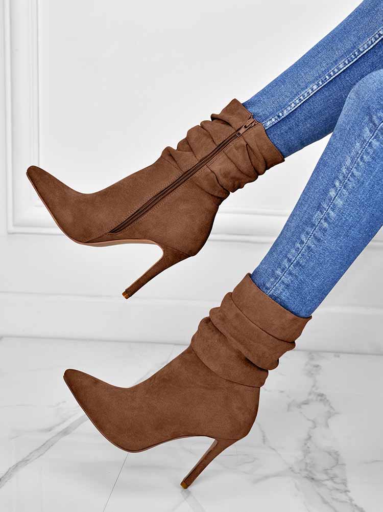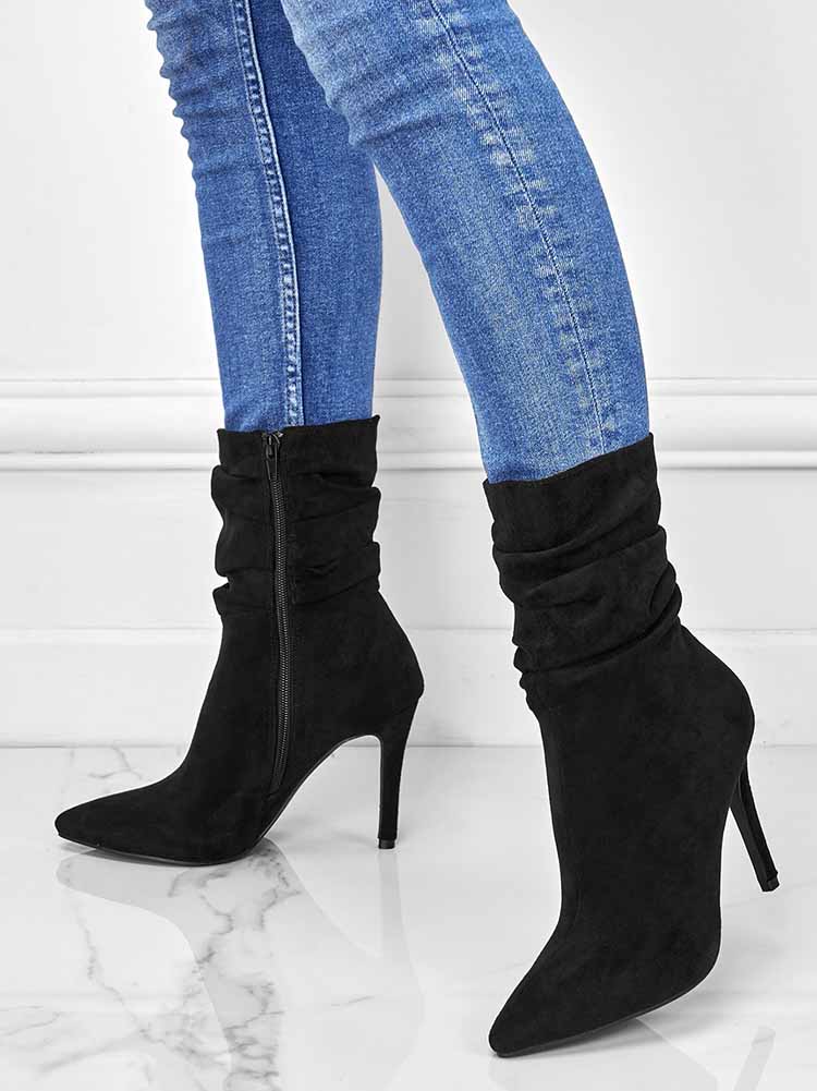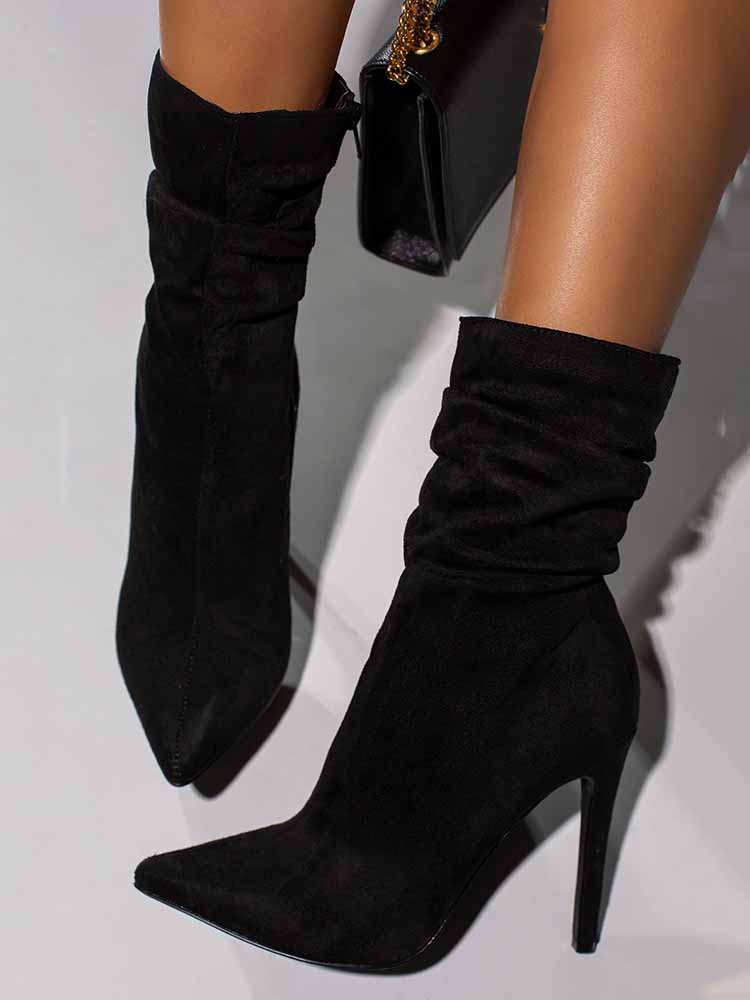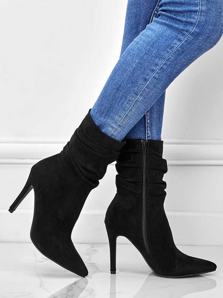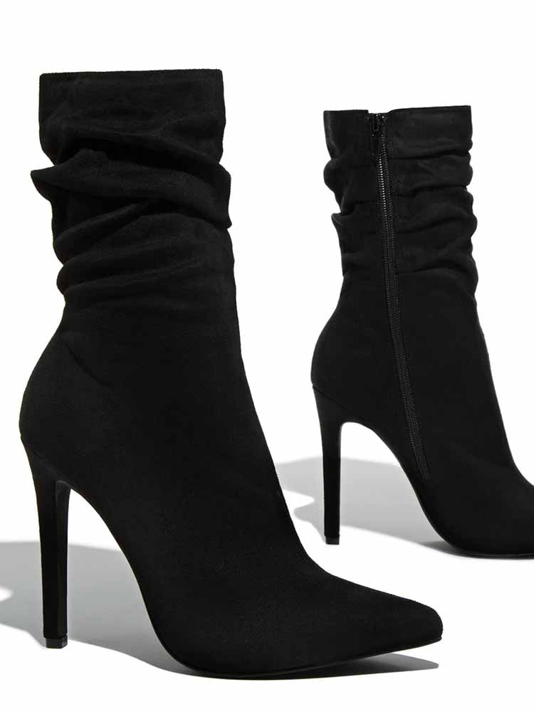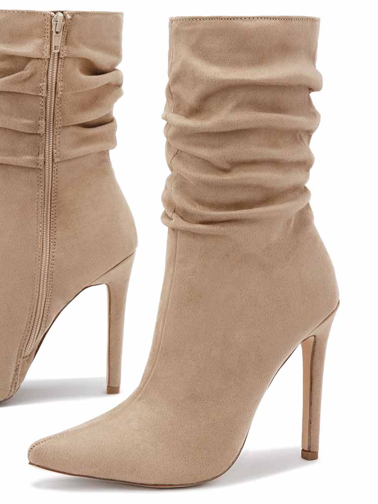 Ruched Stiletto Heeled Side Zipper Boots