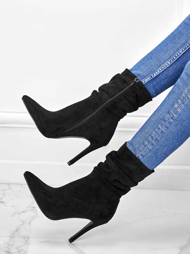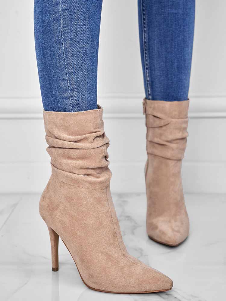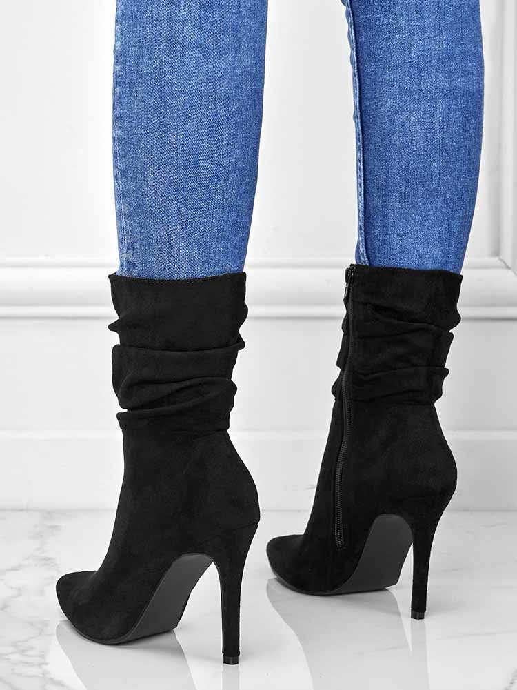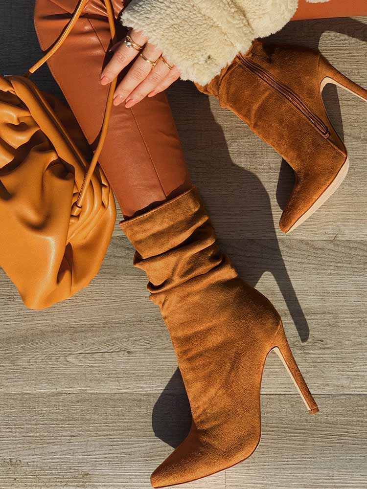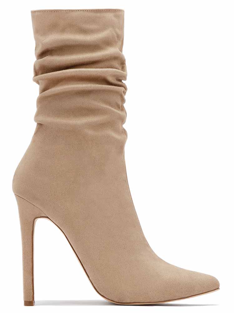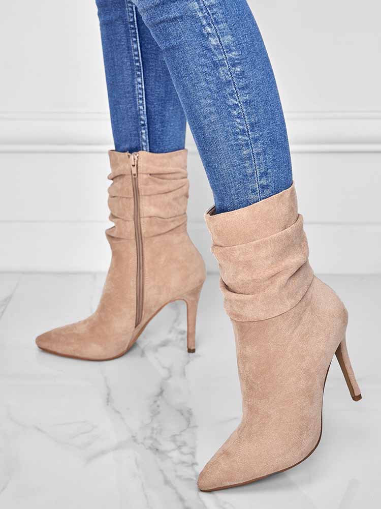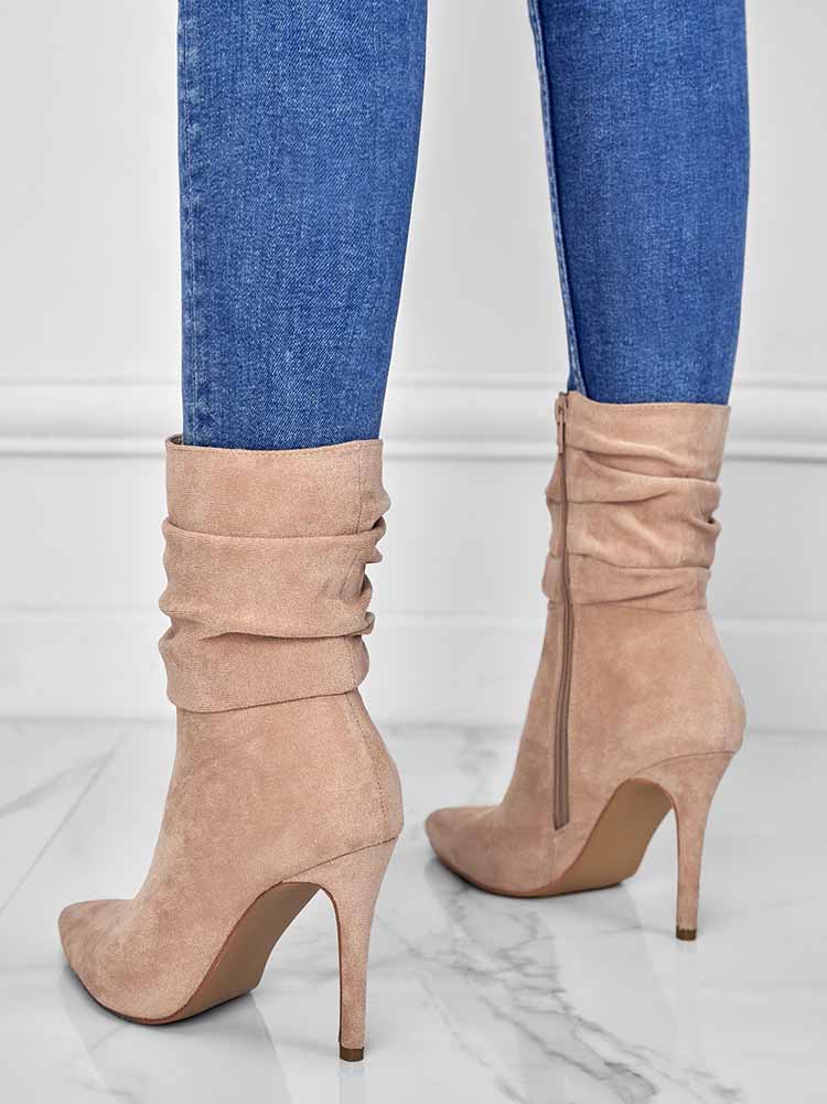 Ruched Stiletto Heeled Side Zipper Boots