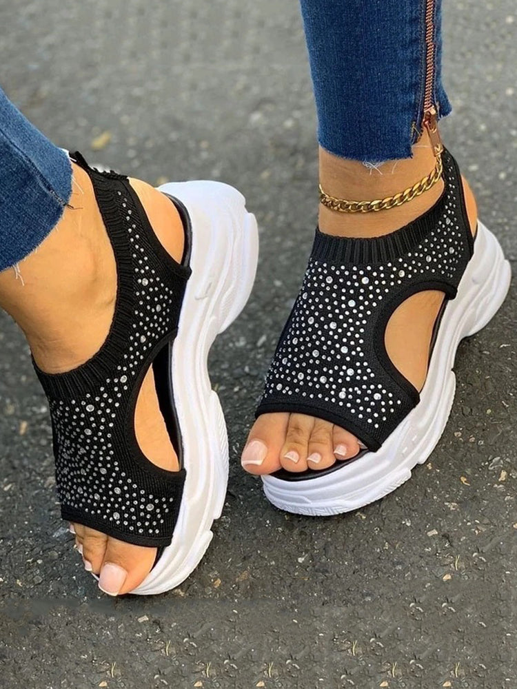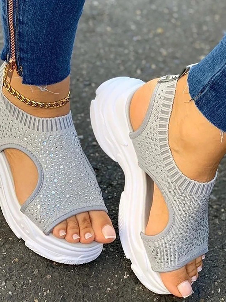 Slip On Peep Toe Knitted Sandals