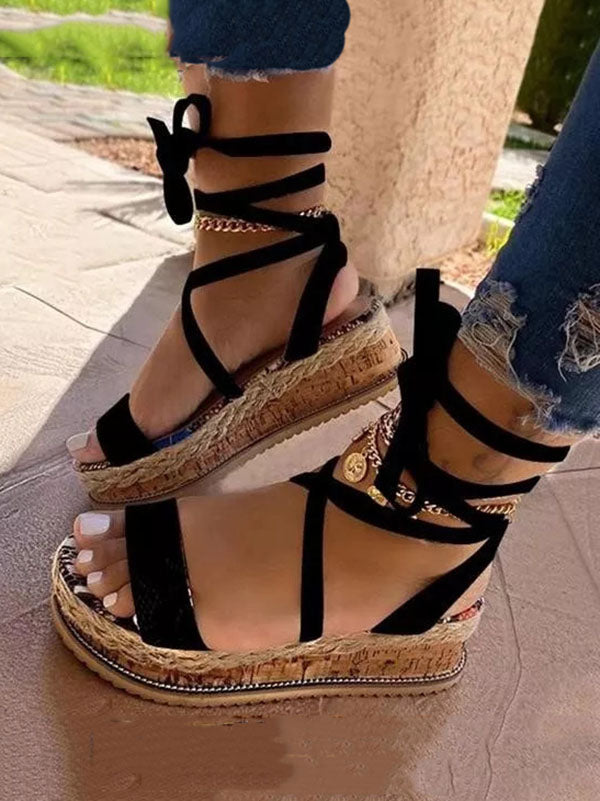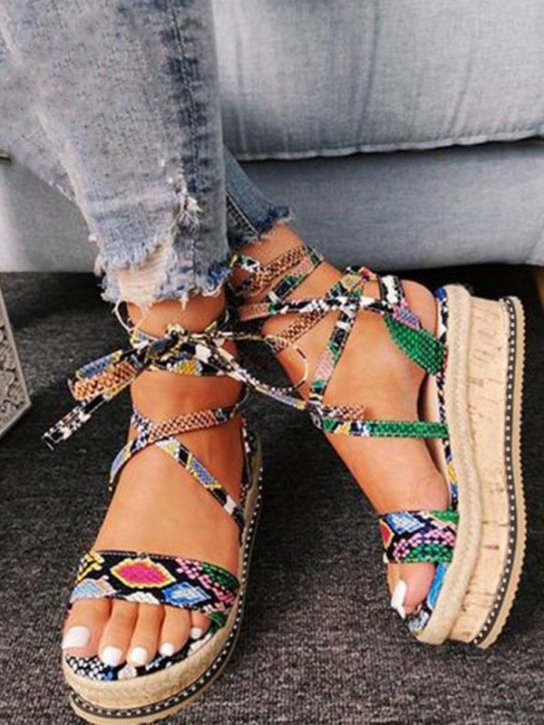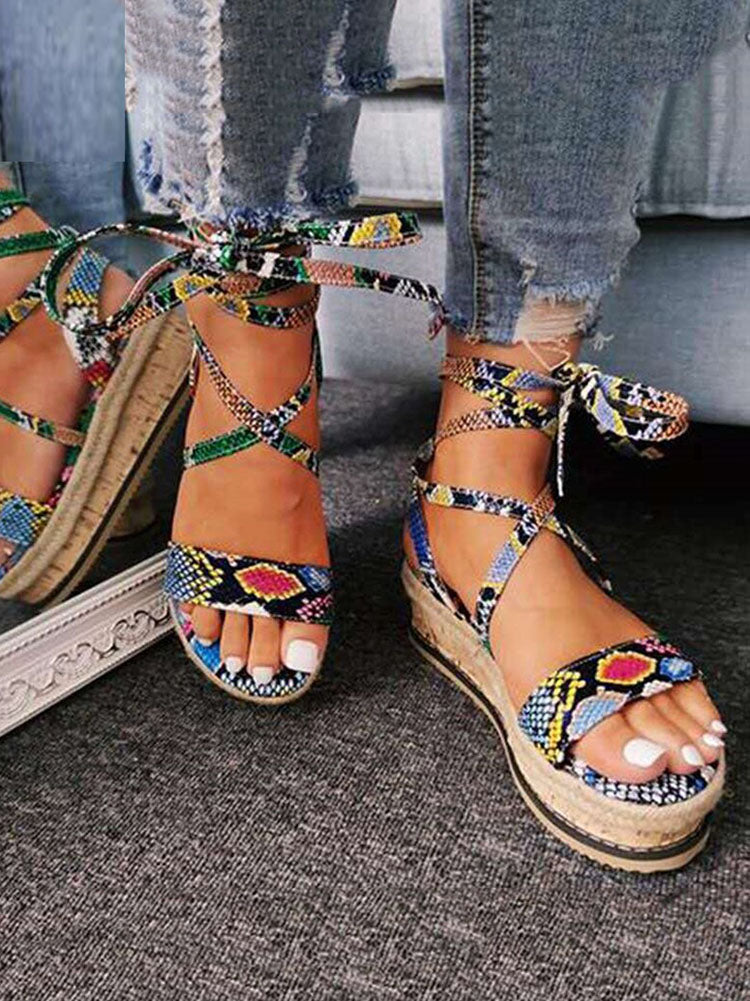 Snake Cross Strap Platform Heels Sandals