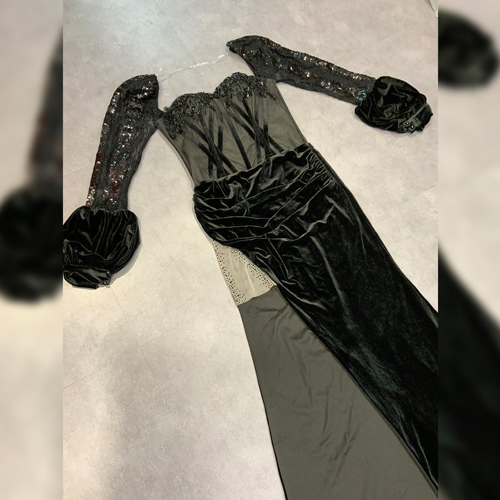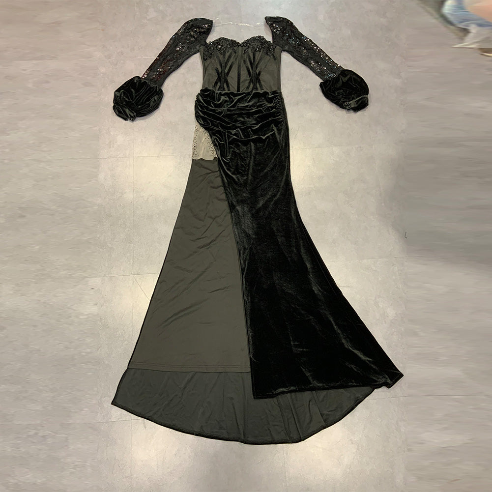 Square Collar Long Sleeve Maxi Side Slit Bodycon Dress