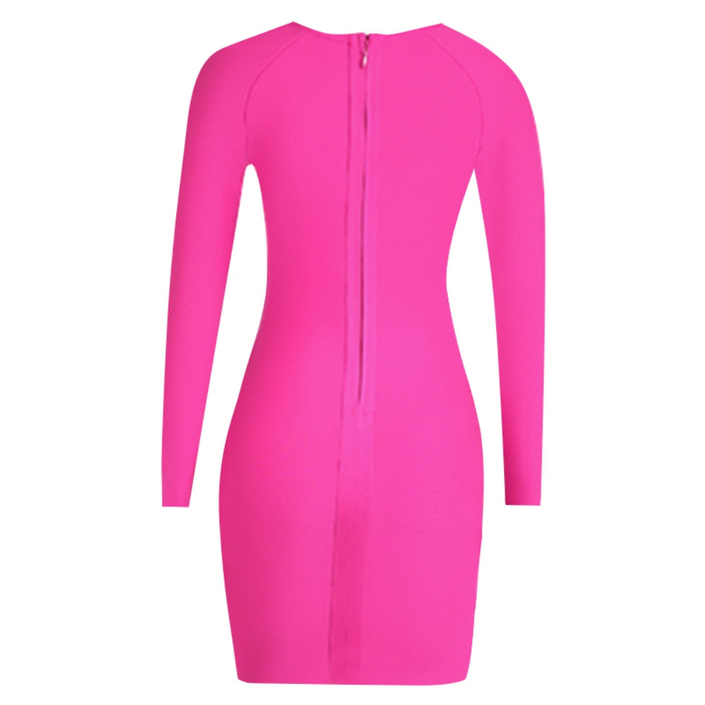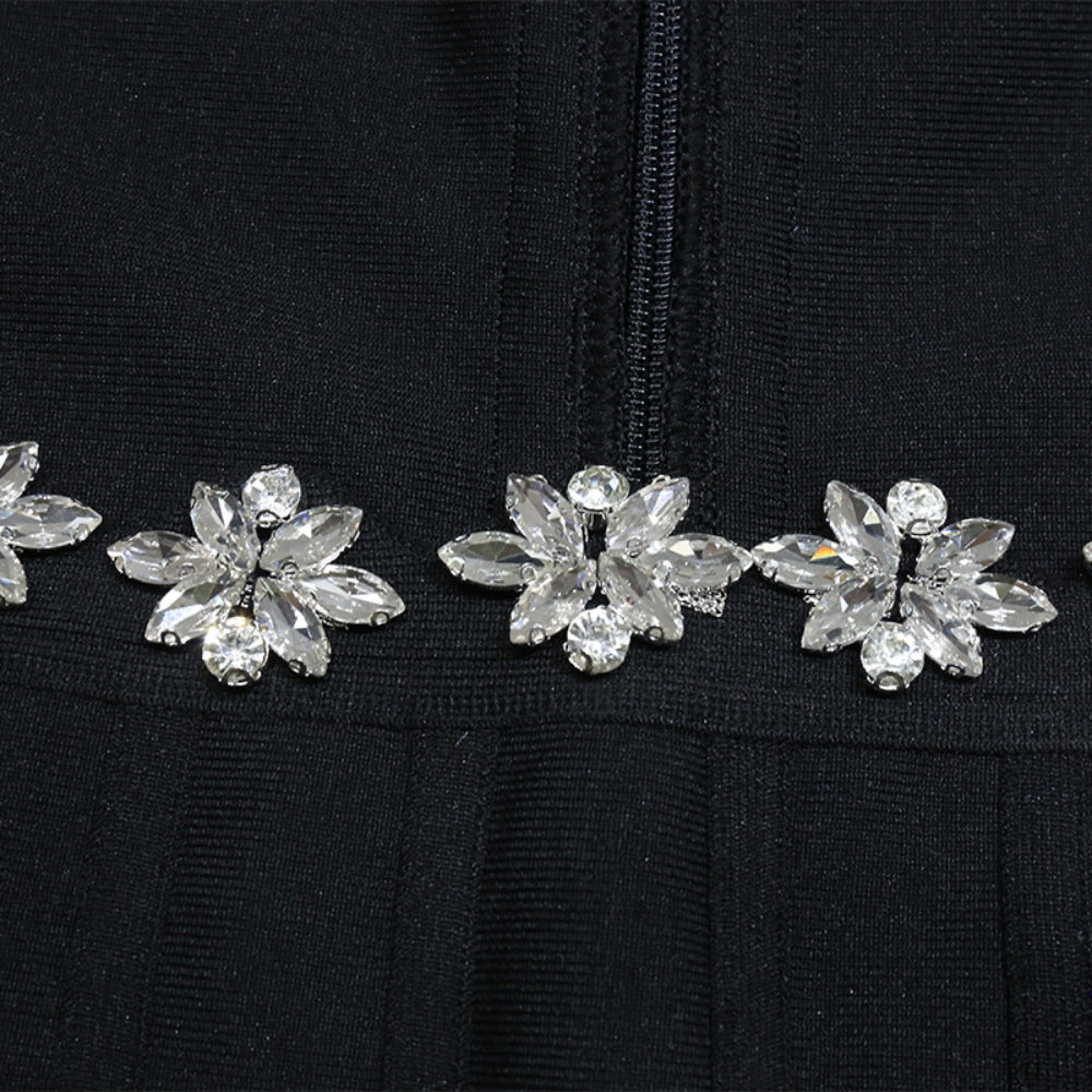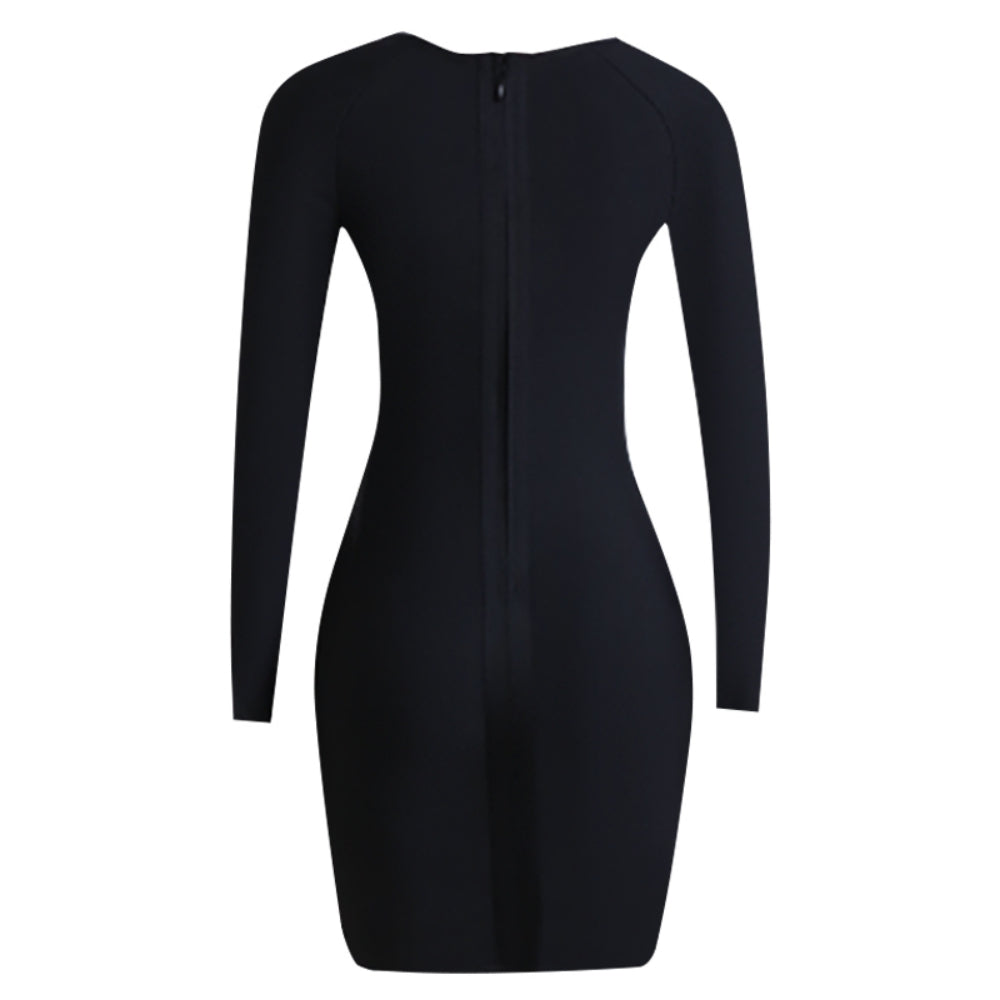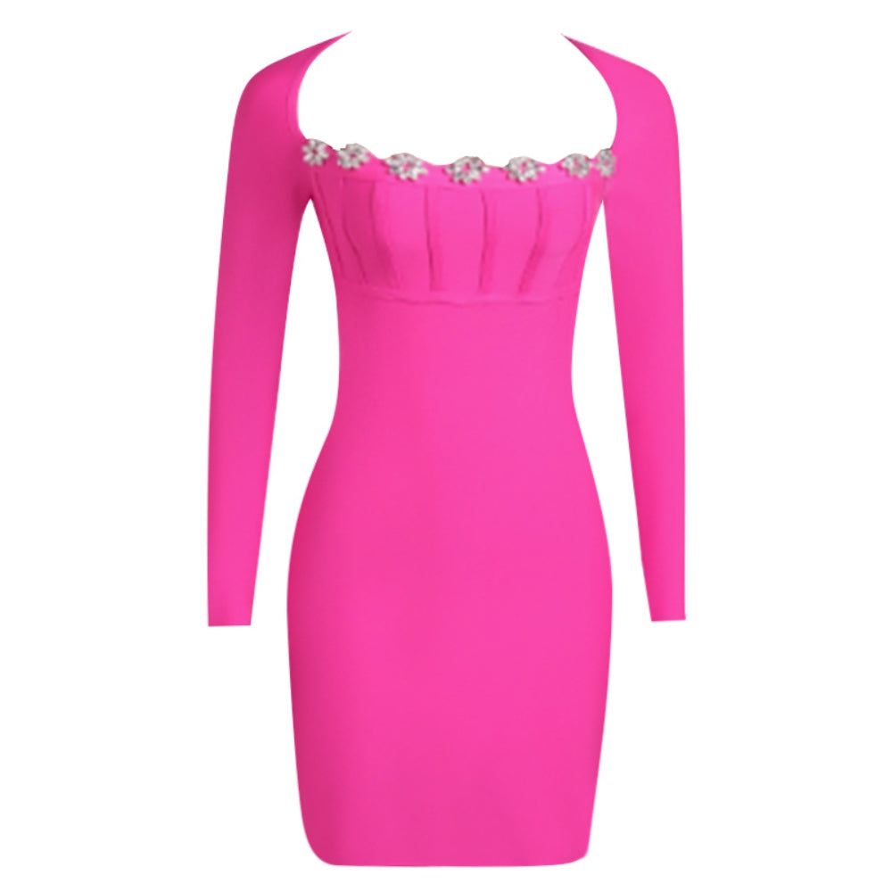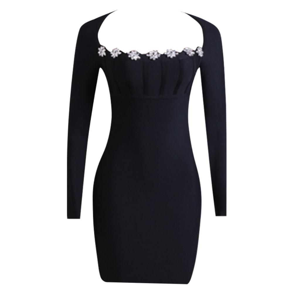 Square Collar Long Sleeve Mini Diamente Embellished Bandage Dress