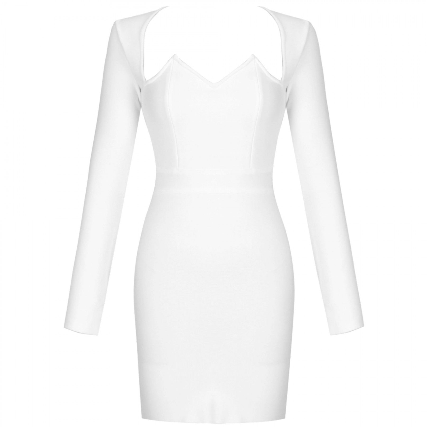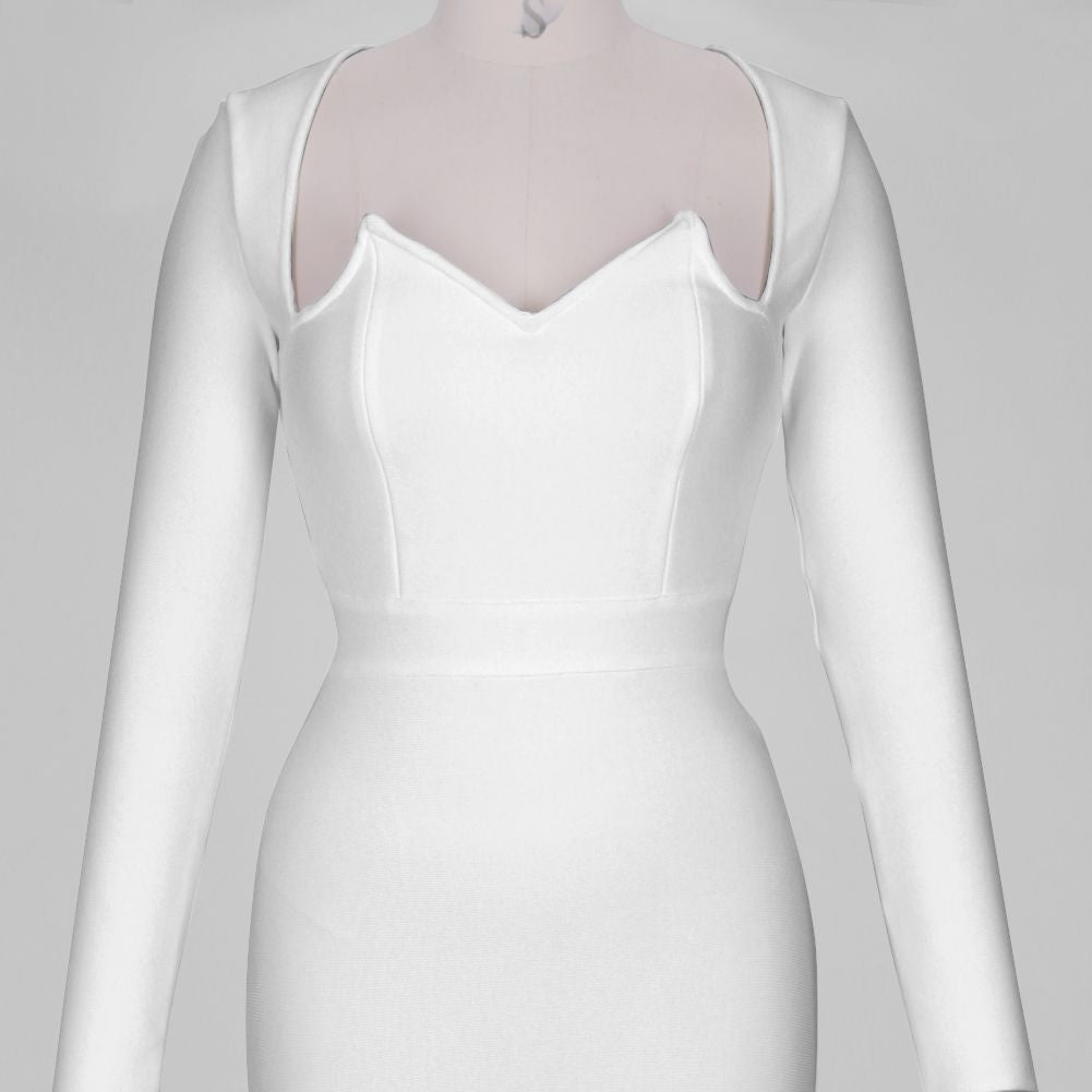 Square Collar Long Sleeve Plain Mini Bandage Dress