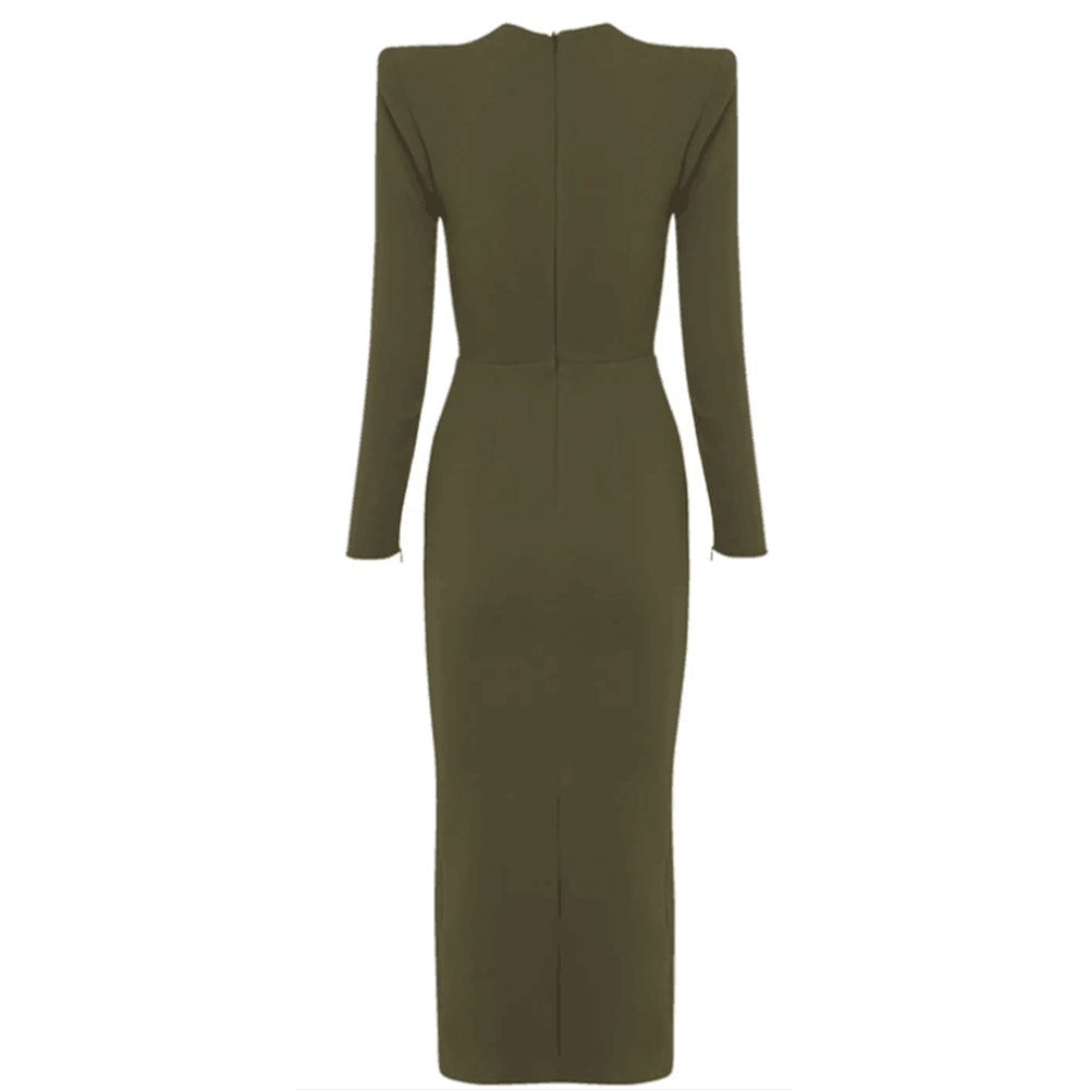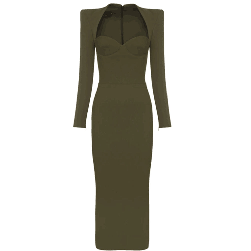 Square Collar Long Sleeve Plain Over Knee Bandage Dress
