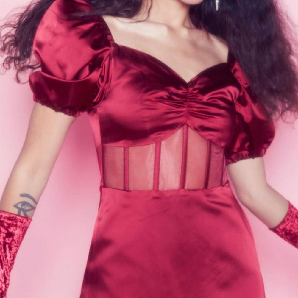 Square Collar Short Sleeve Mini Mesh Bodycon Dress