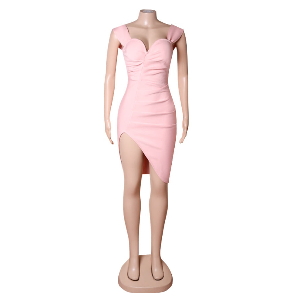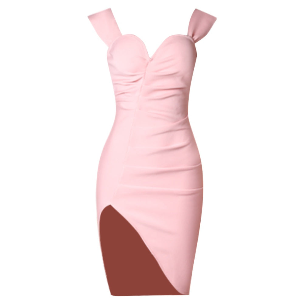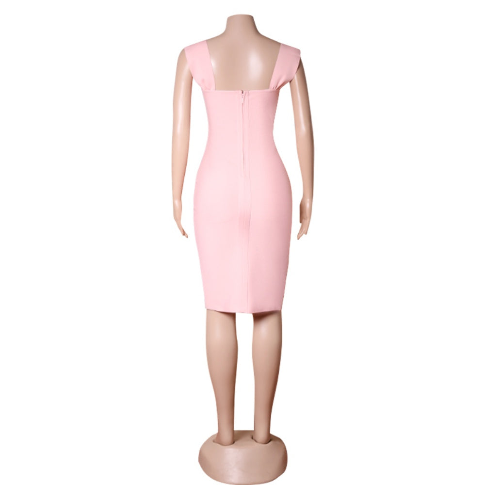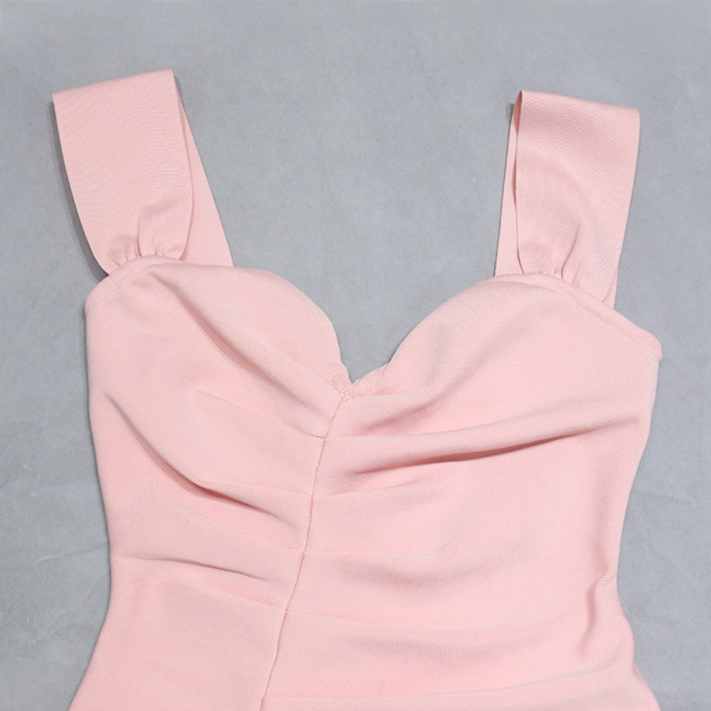 Square Collar Sleeveless Midi Pleated Bandage Dress