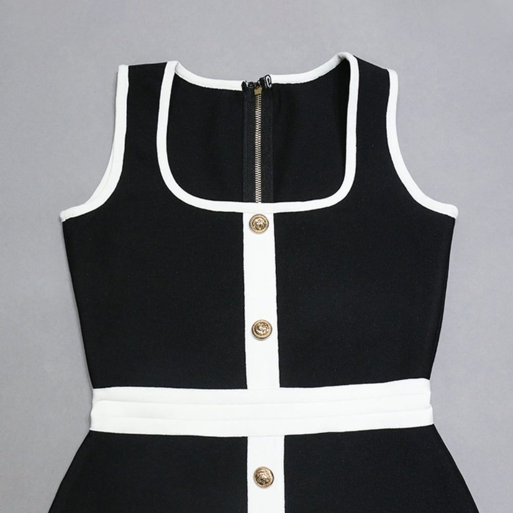 Square Collar Sleeveless Mini Metal Ornamental Buckle Bandage Dress