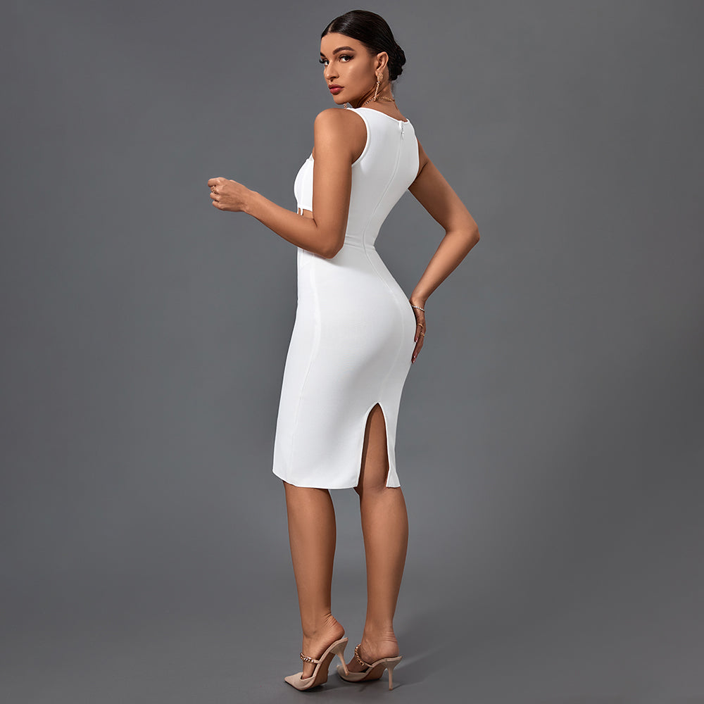 Square Collar Sleeveless Striped Midi Bandage Dress
