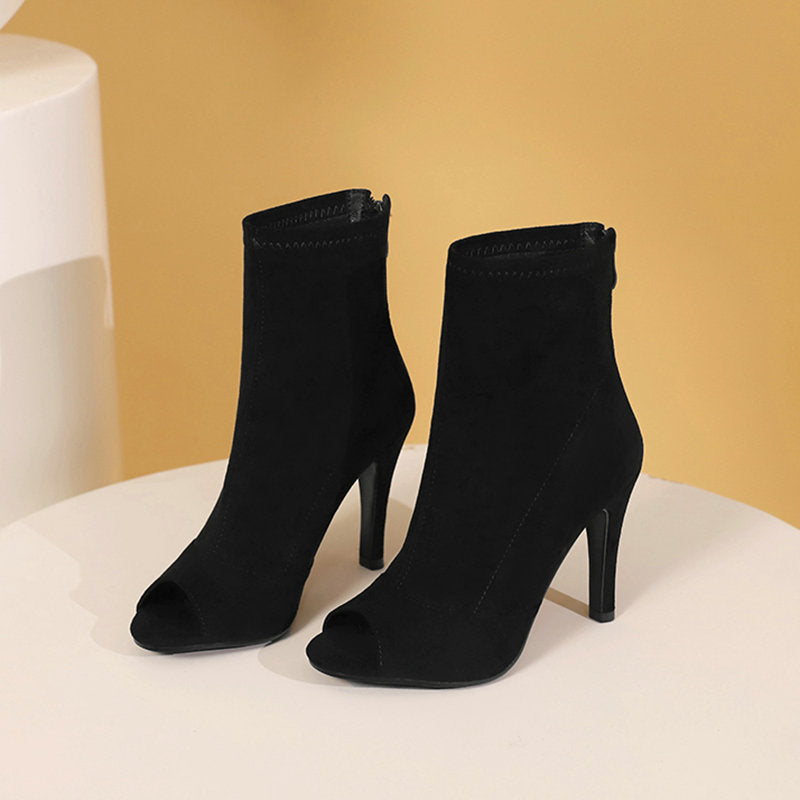 Square Peep Toe Suede Boots