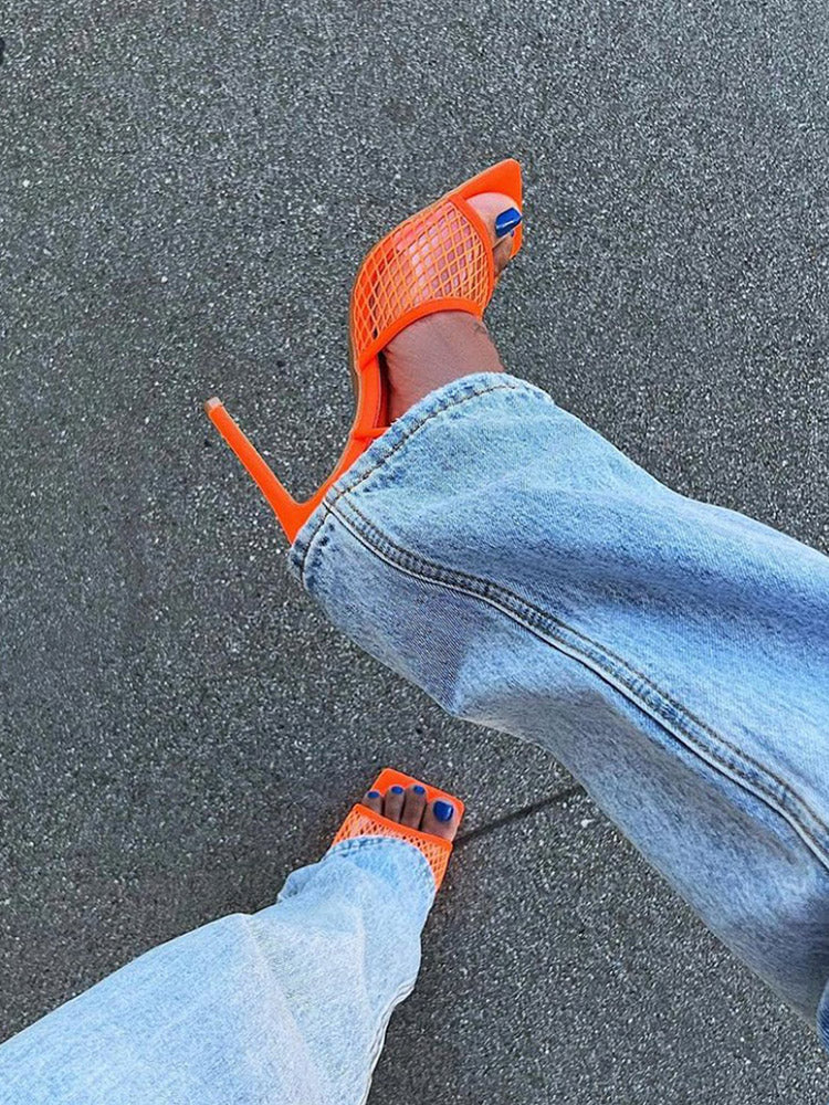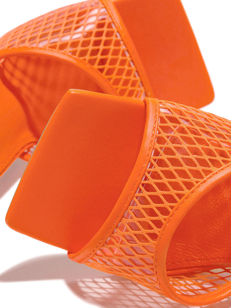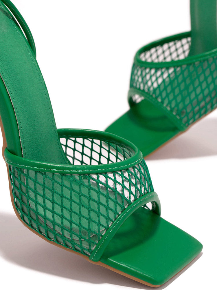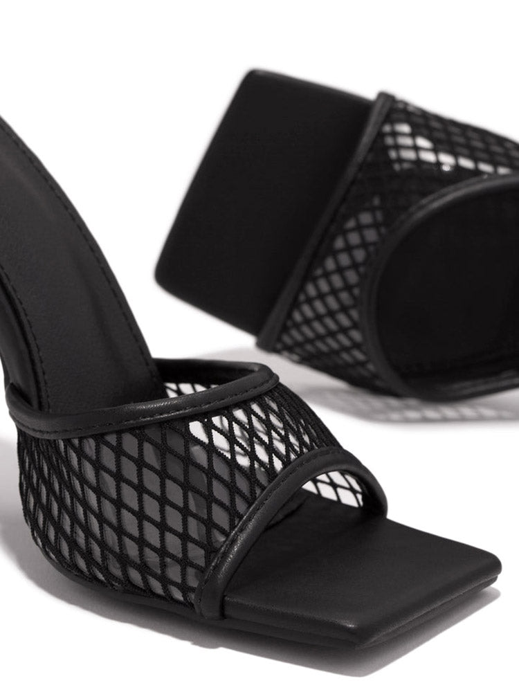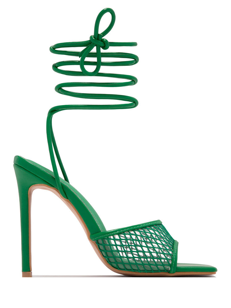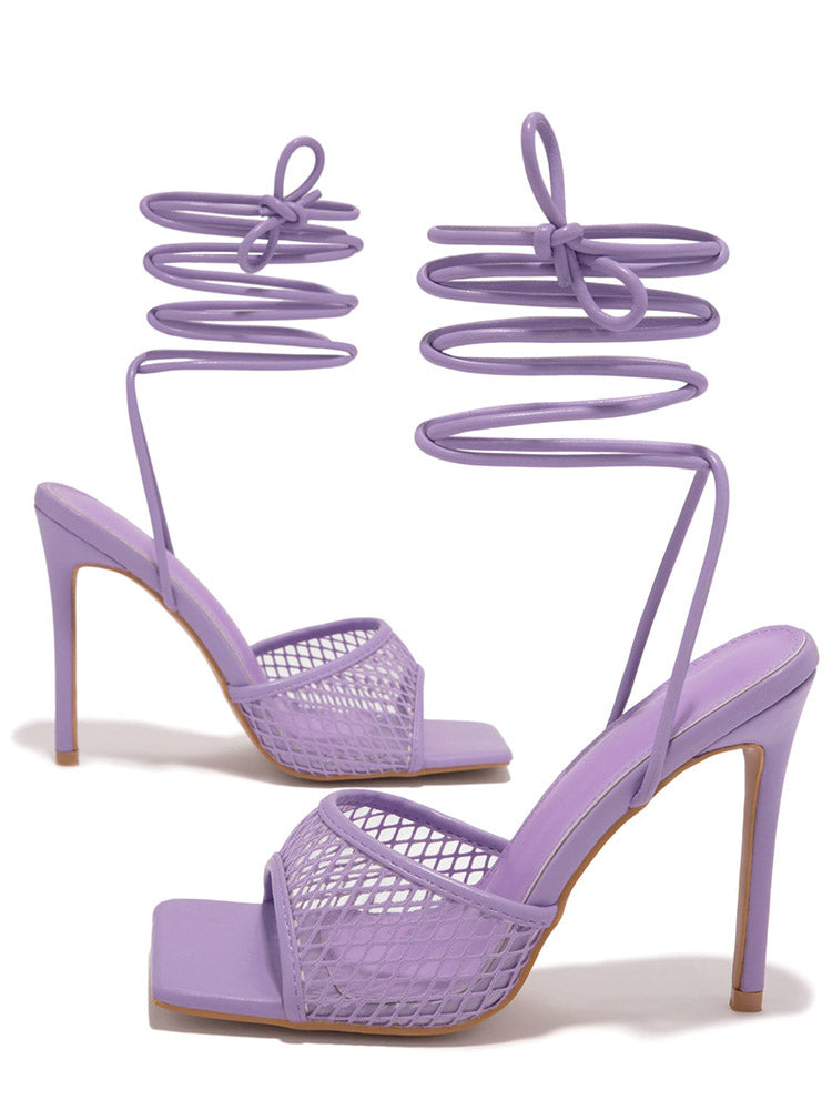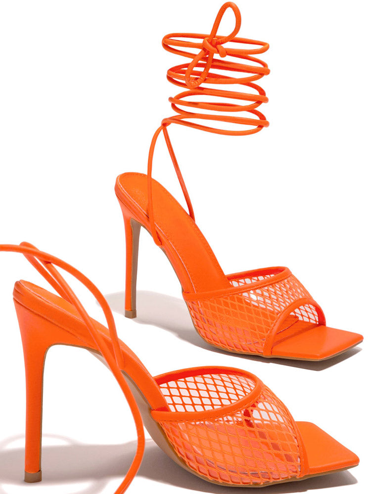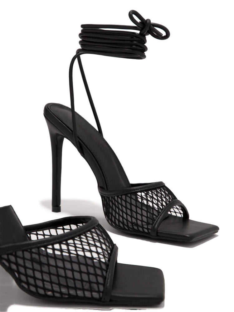 Square Toe Mesh Lace Up Heel