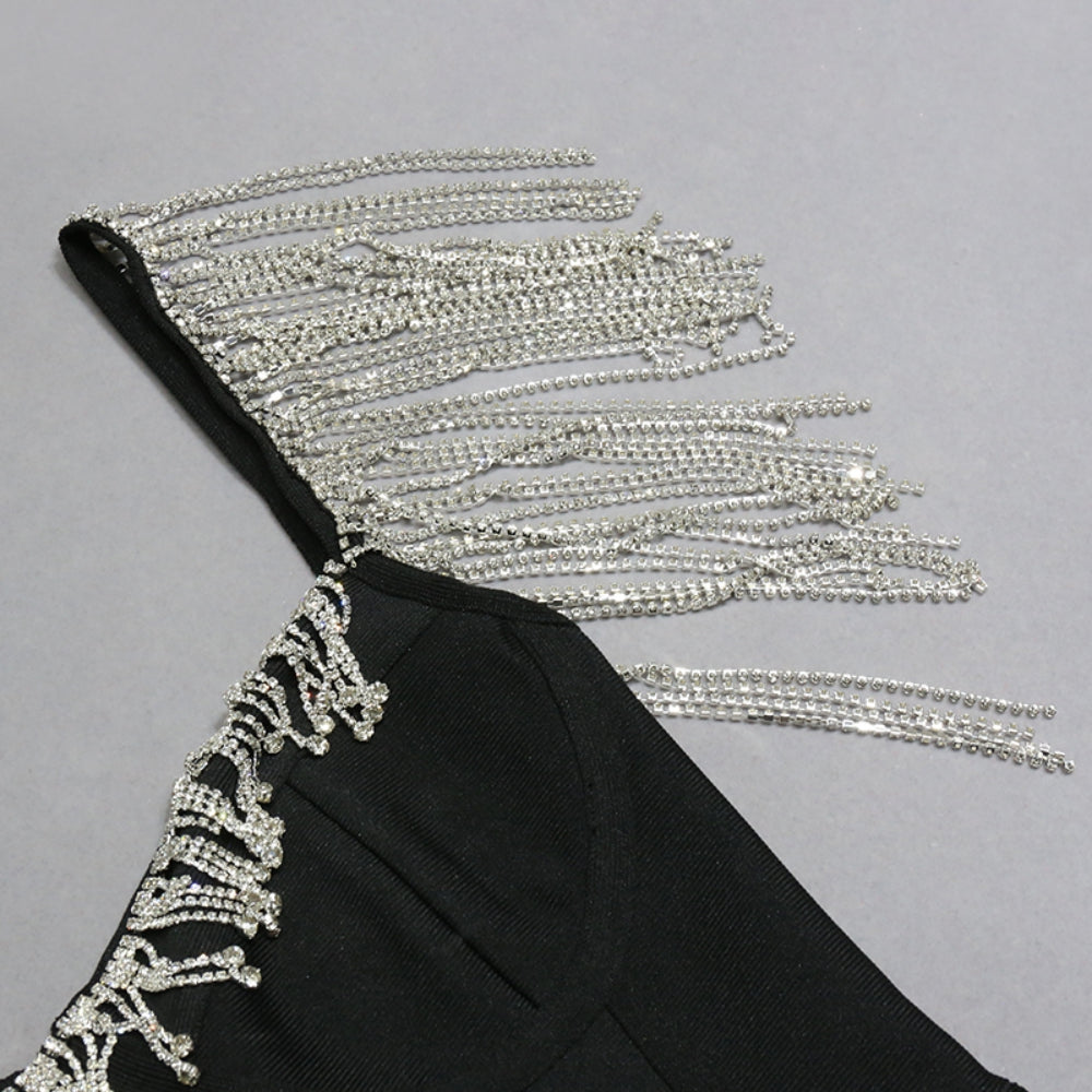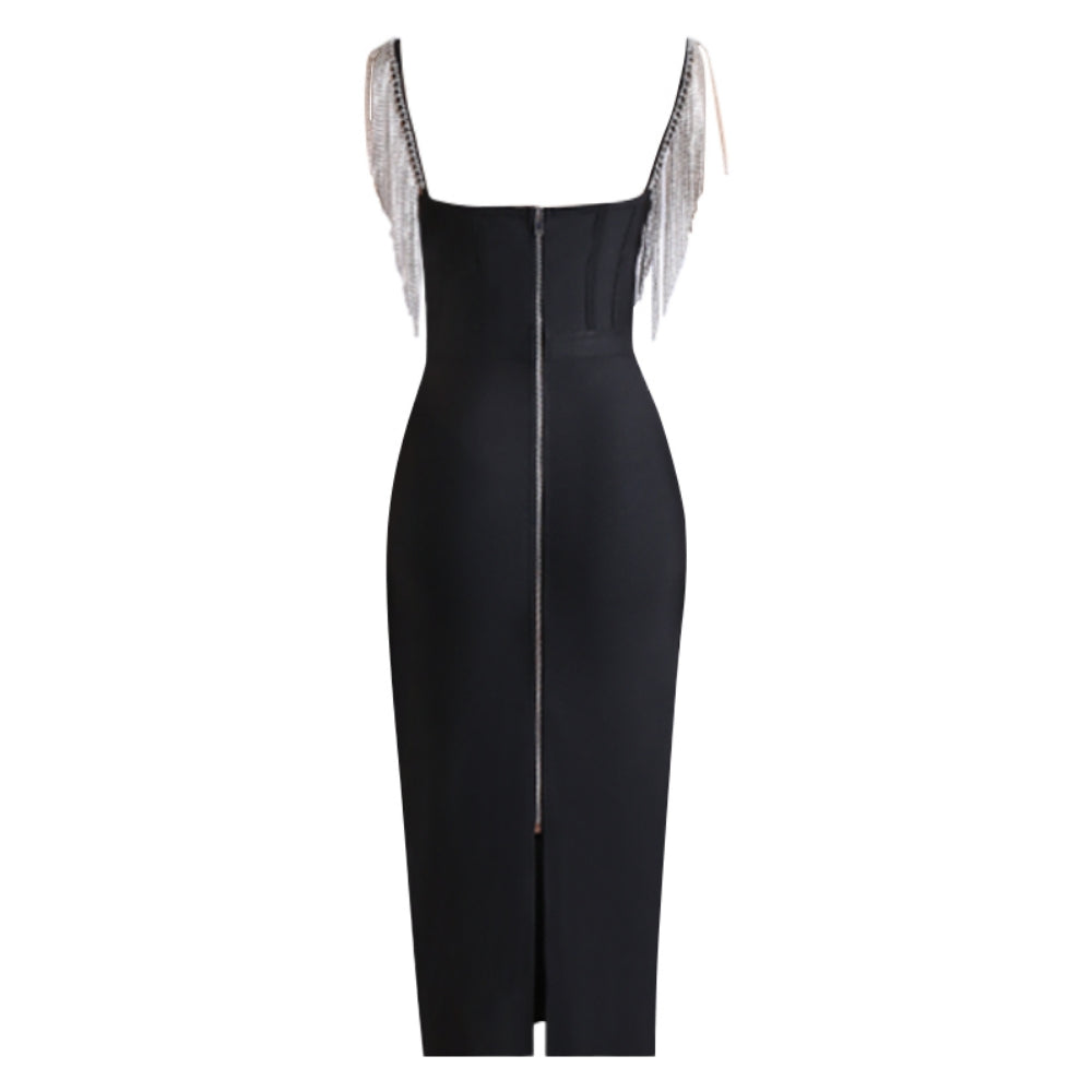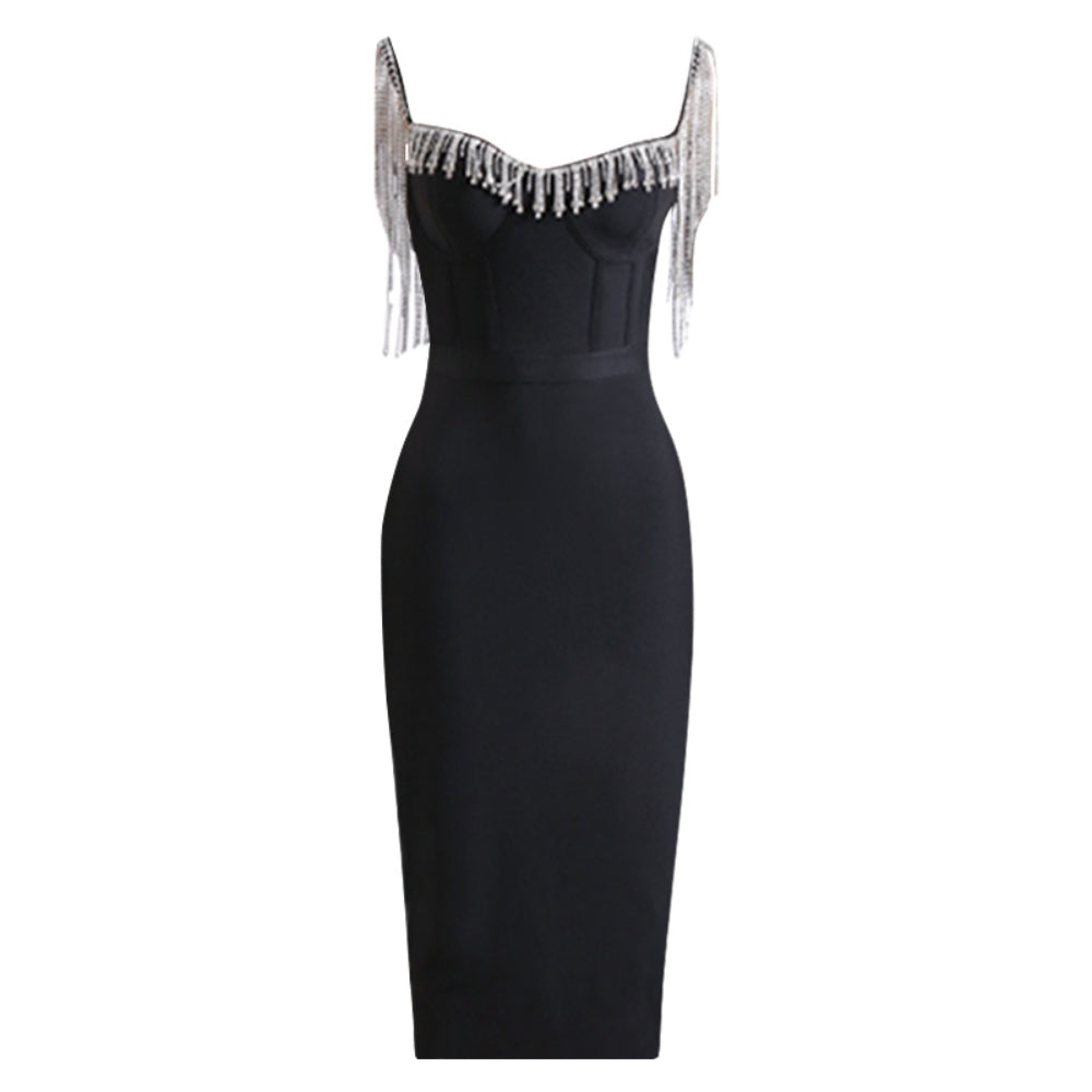 Strapless Sleeveless Diamente Embellished Midi Bandage Dress