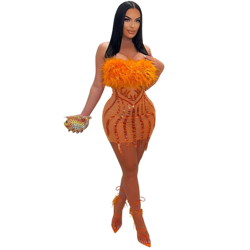 Strapless Sleeveless Diamond Feather Mini Exclusive Custom Red Dress TH26073
