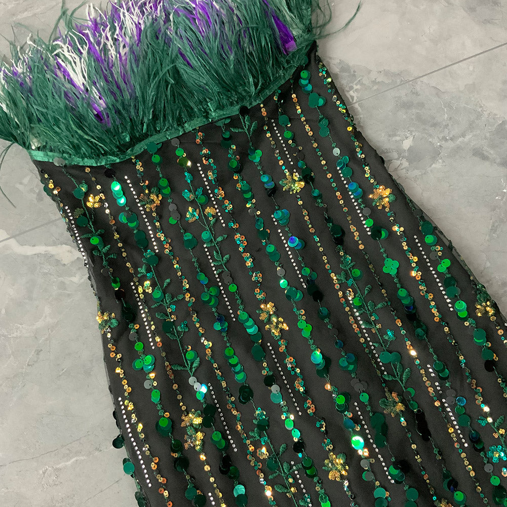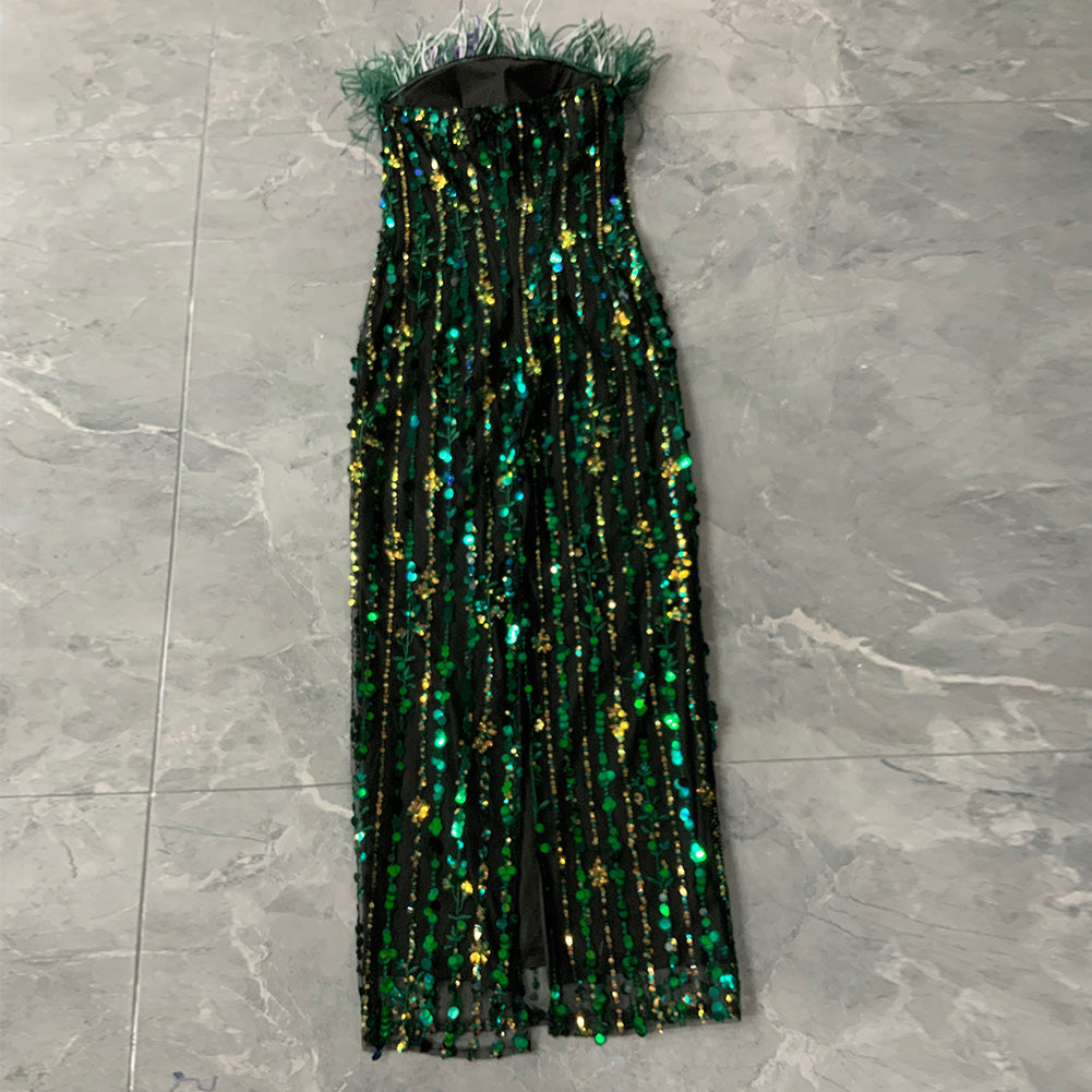 Strapless Sleeveless Feather Maxi Bodycon Dress